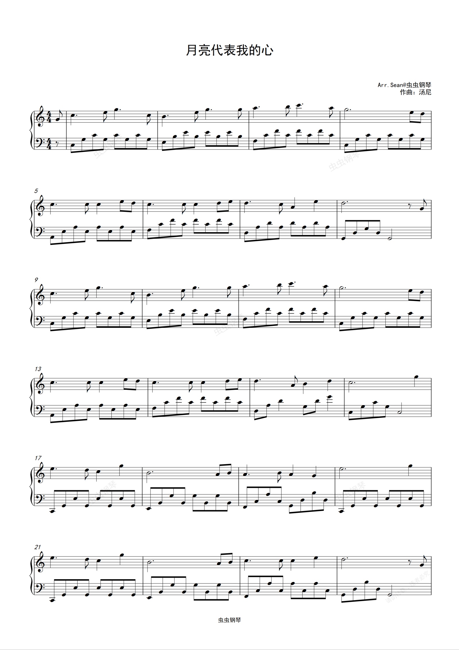 钢琴谱:《月亮代表我的心》简单版