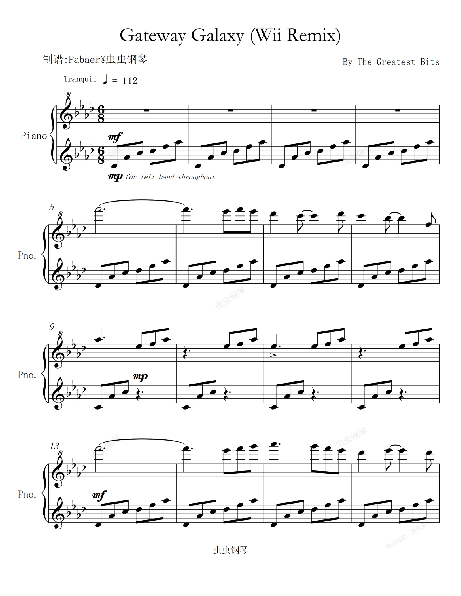 钢琴谱:Gateway Galaxy (Wii Remix)