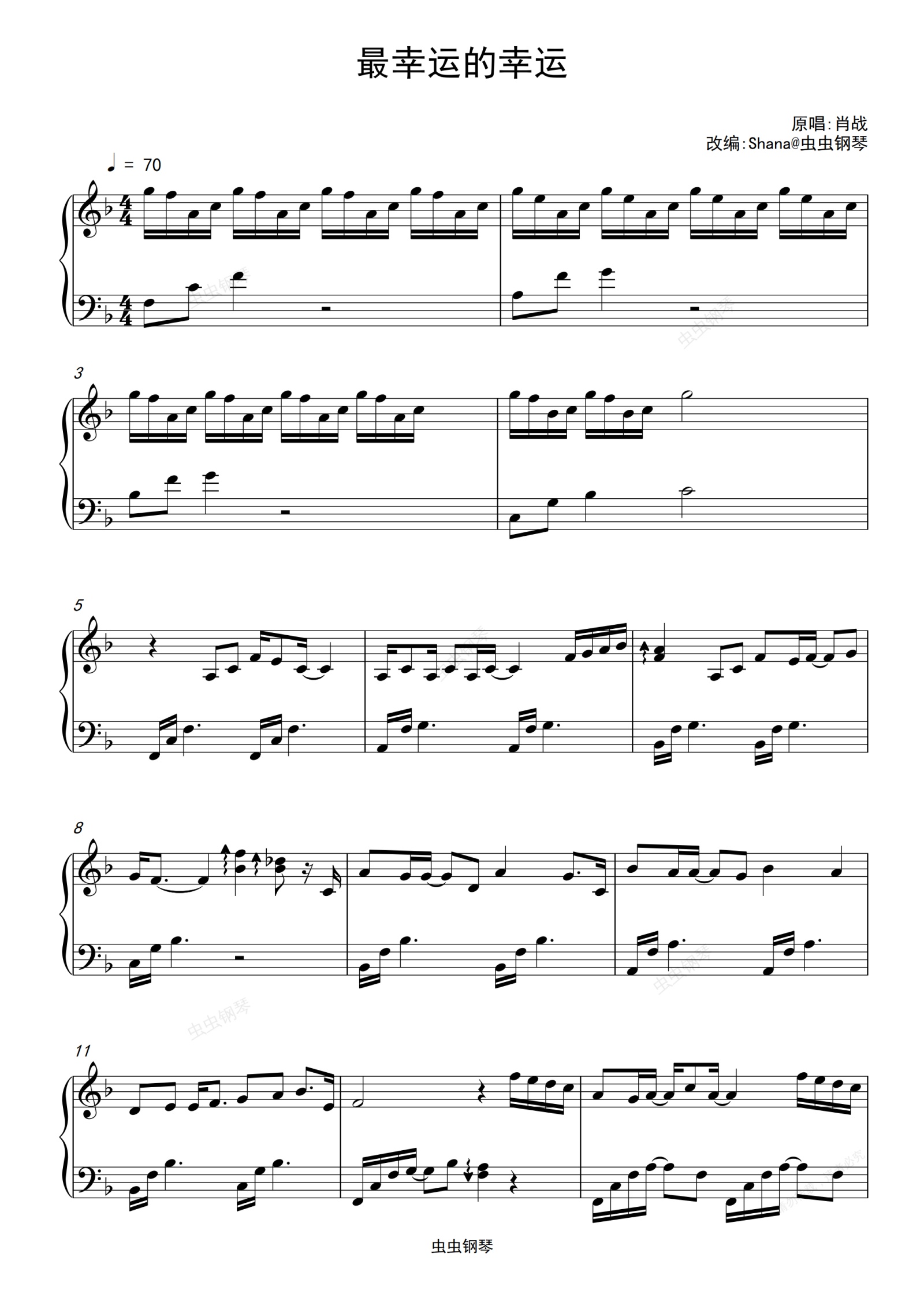 钢琴谱:最幸运的幸运(简易版)《余生请多指教》片尾曲