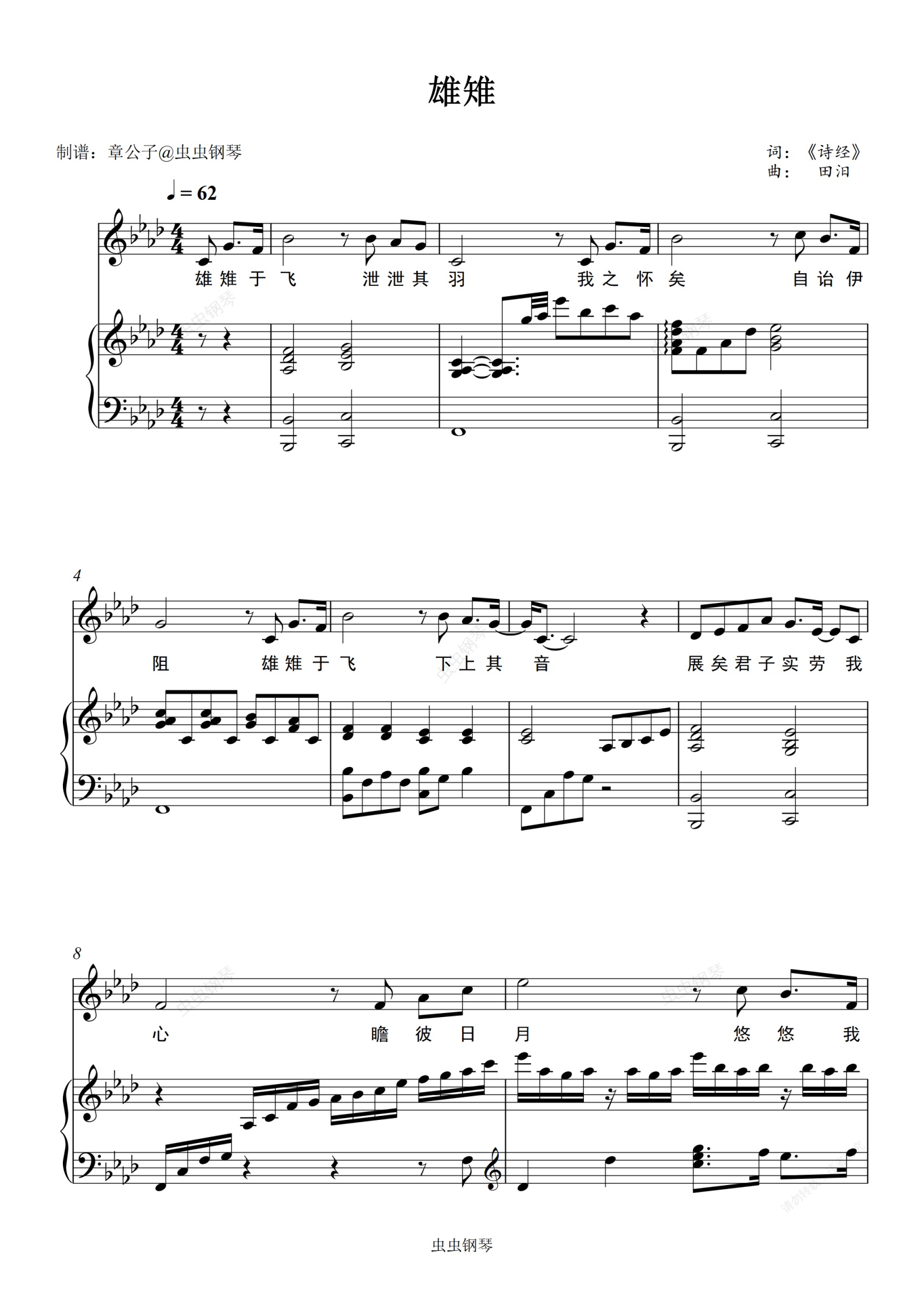 钢琴谱:《雄雉》 游戏天涯明月刀OST 钢琴弹唱伴奏谱