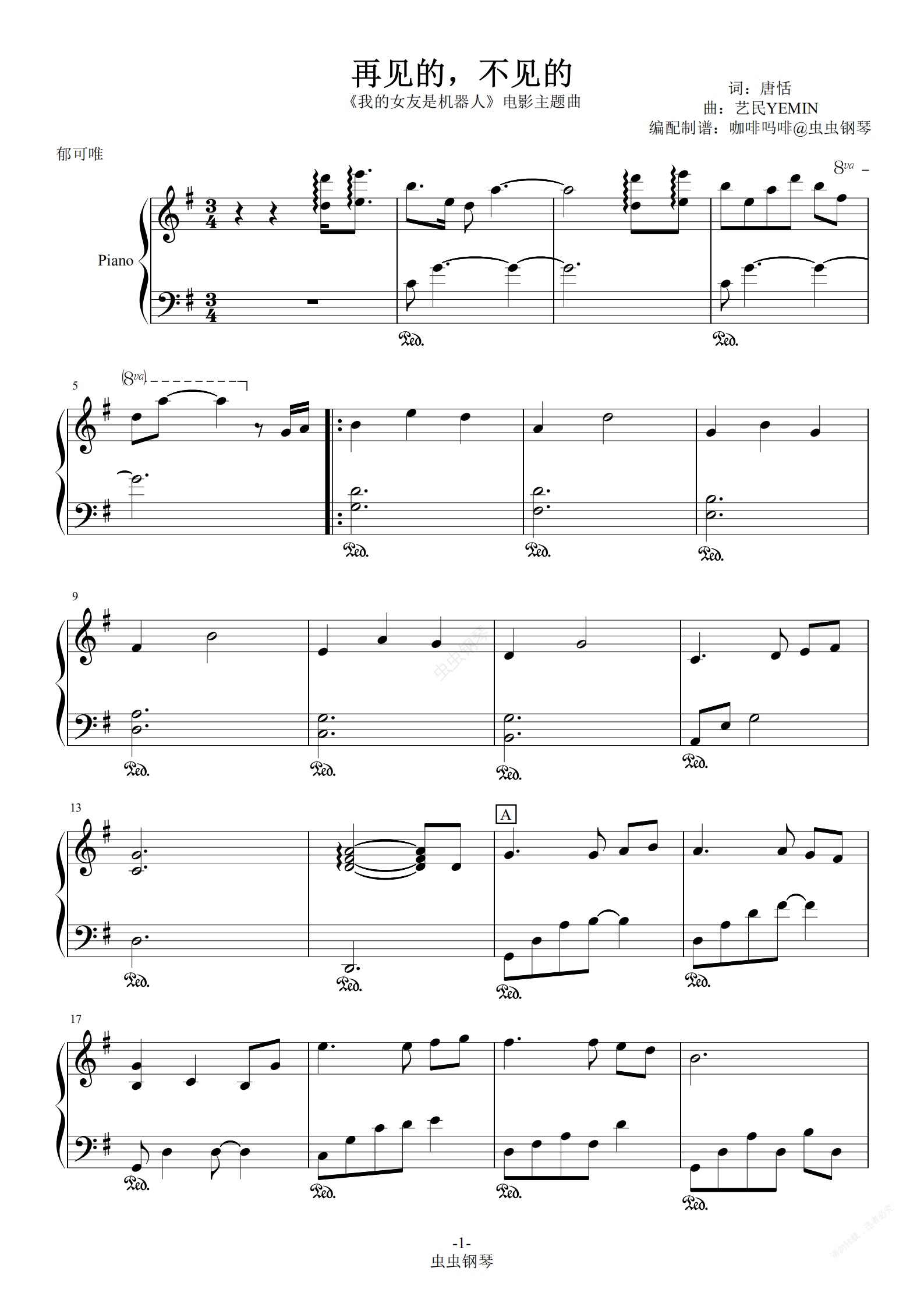 钢琴谱:再见的,不见的-郁可唯 G调独奏谱