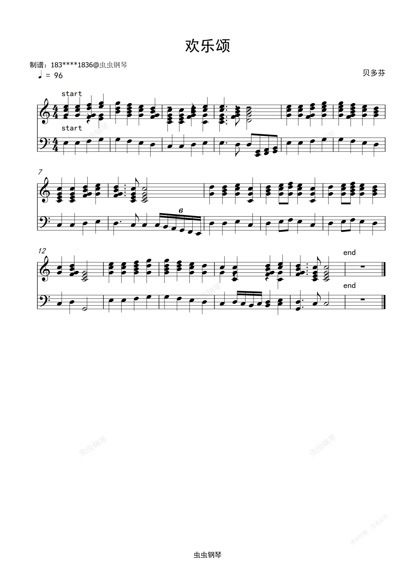 您的位置: 首页 > 钢琴谱库 > 欢乐颂钢琴谱-贝多芬