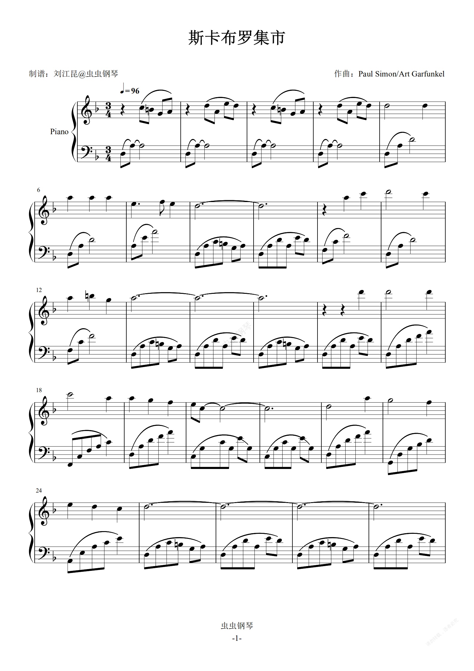 钢琴谱:斯卡布罗集市(简易高度还原版本)
