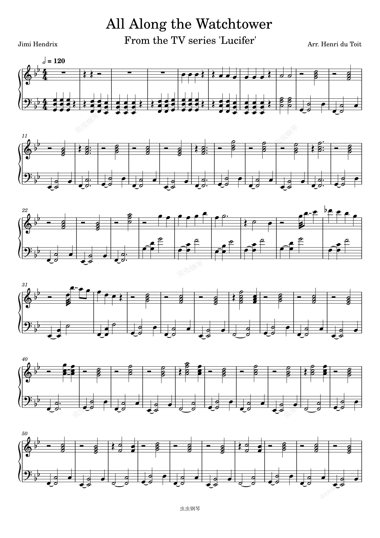 钢琴谱:All Along the Watchtower- Jimi Hendrix