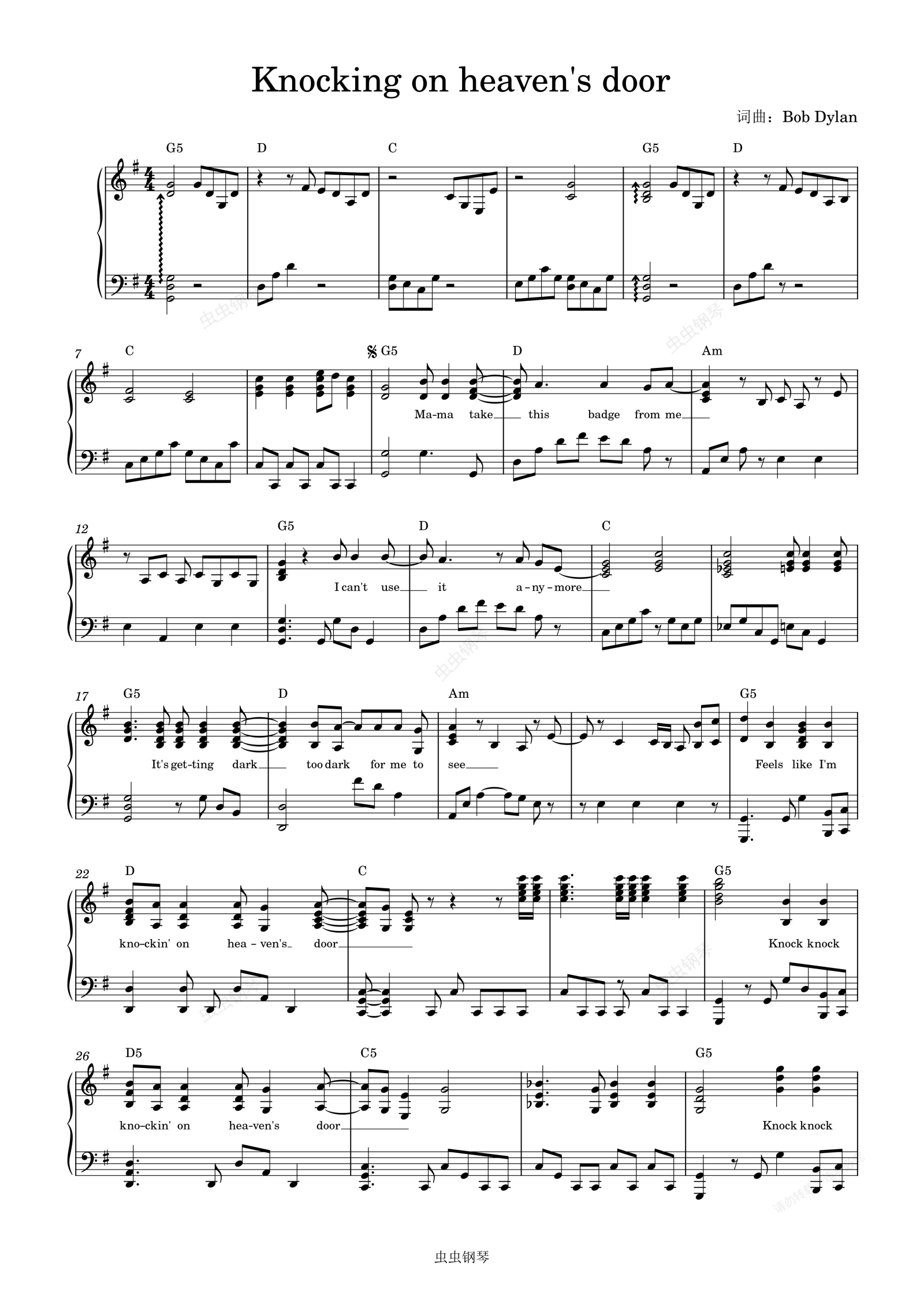 钢琴谱:Knockin' On Heaven's Door-Bob Dylan