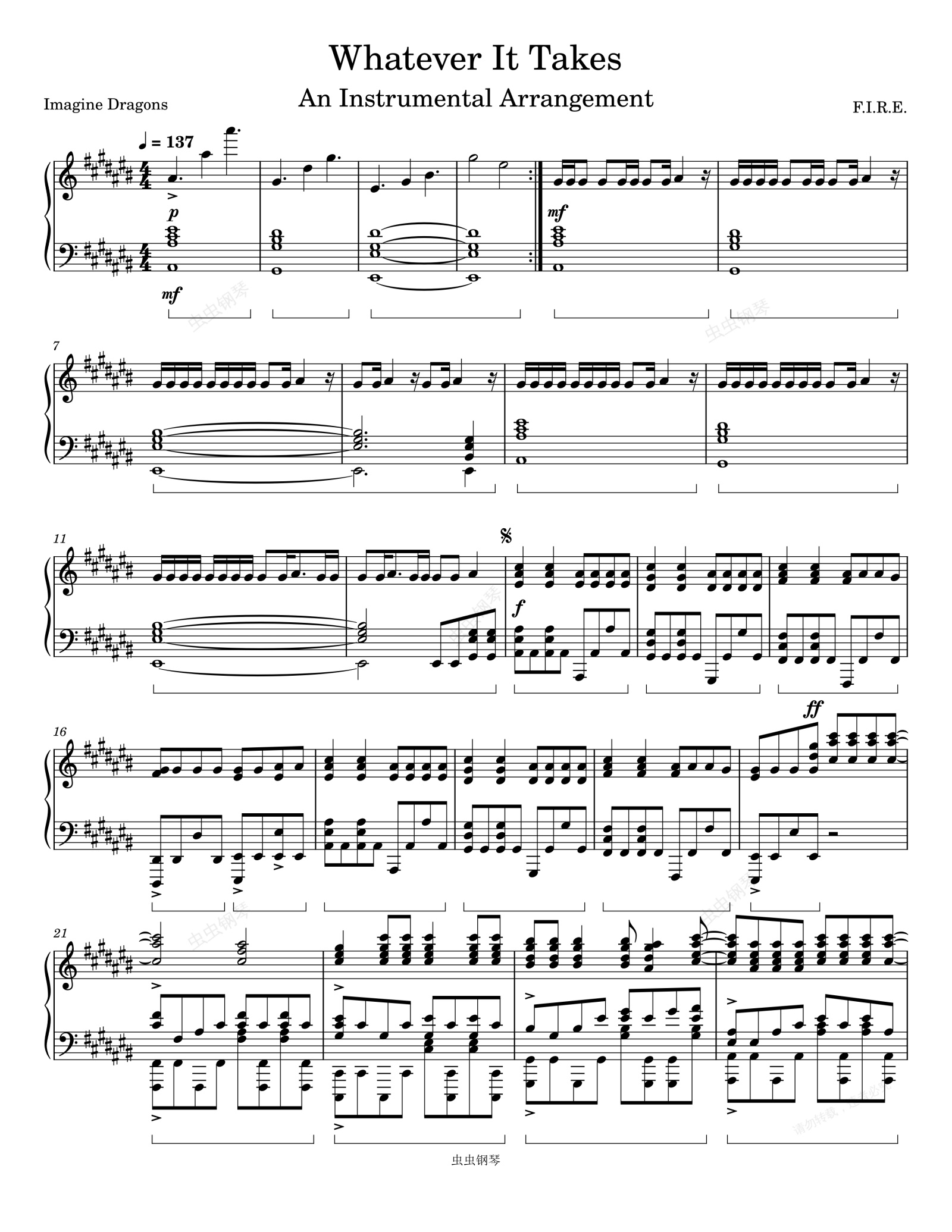 钢琴谱:Whatever It Takes-Imagine Dragons