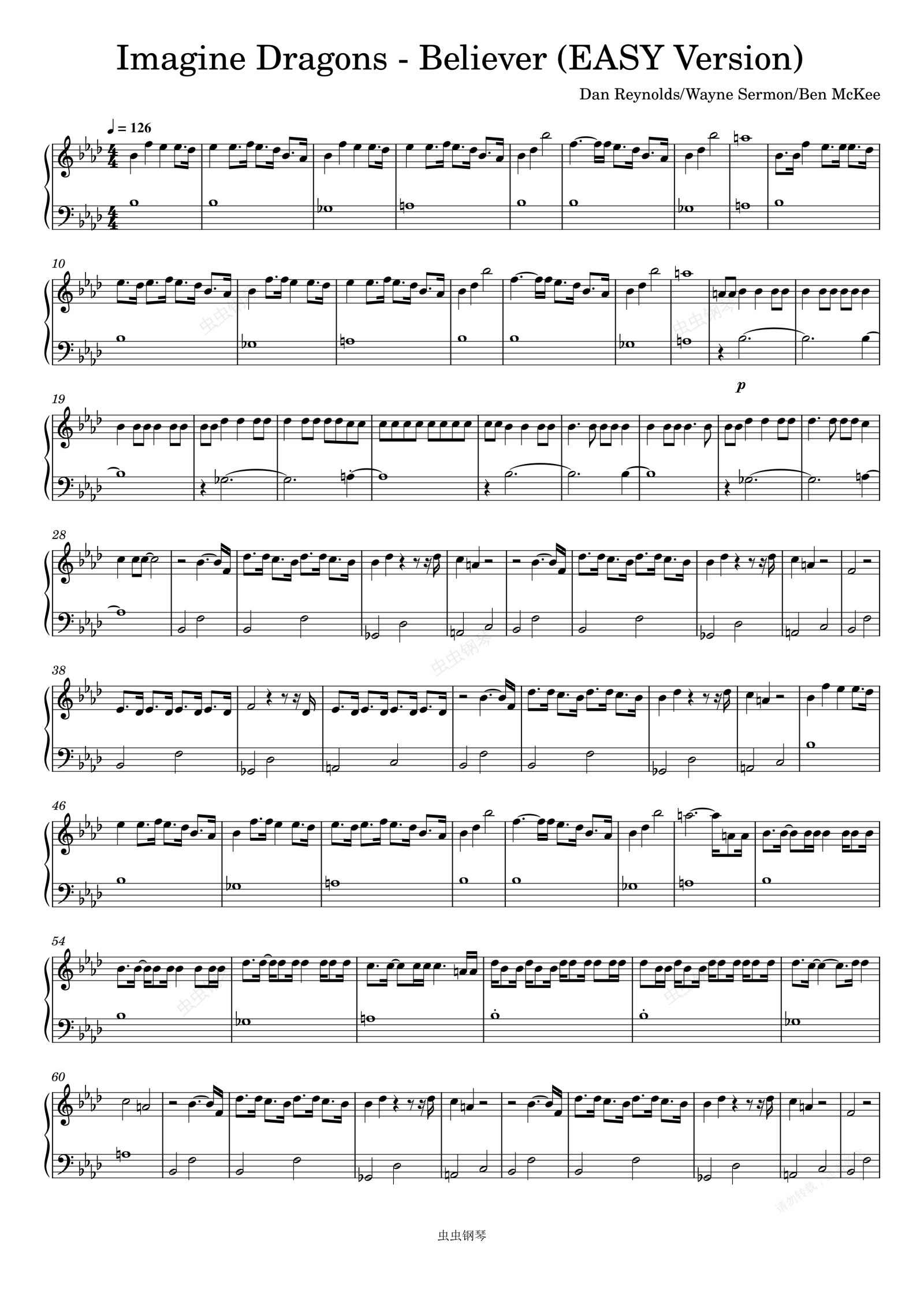 钢琴谱:Imagine Dragons - Believer (EASY Version)