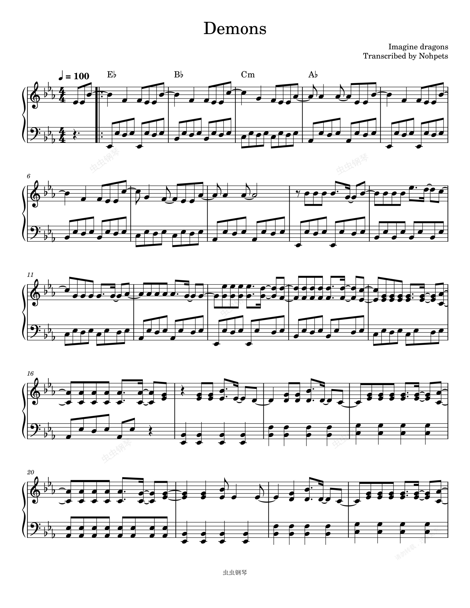 钢琴谱:Imagine Dragons-Demons