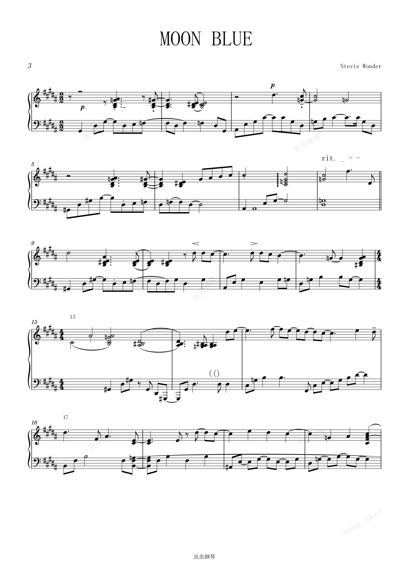 钢琴谱:Stevie Wonder-Moon Blue