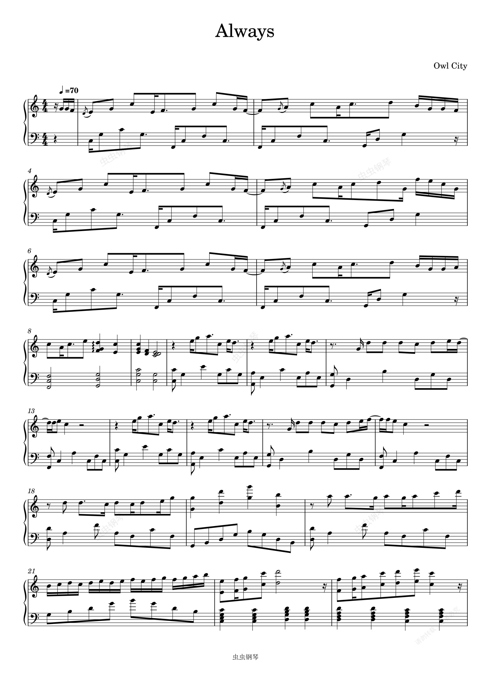 钢琴谱:Always-Owl City