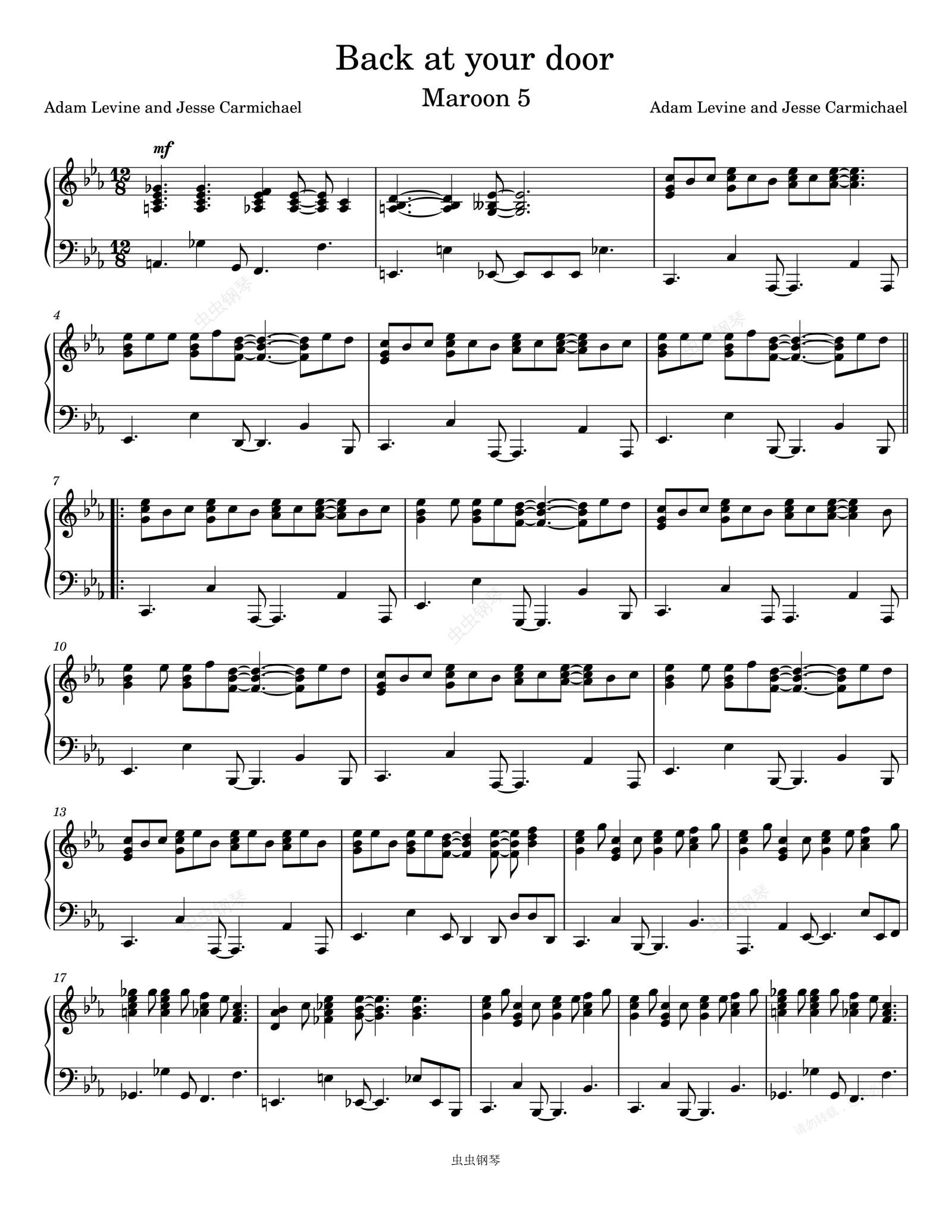 钢琴谱:Back At Your Door-Maroon 5