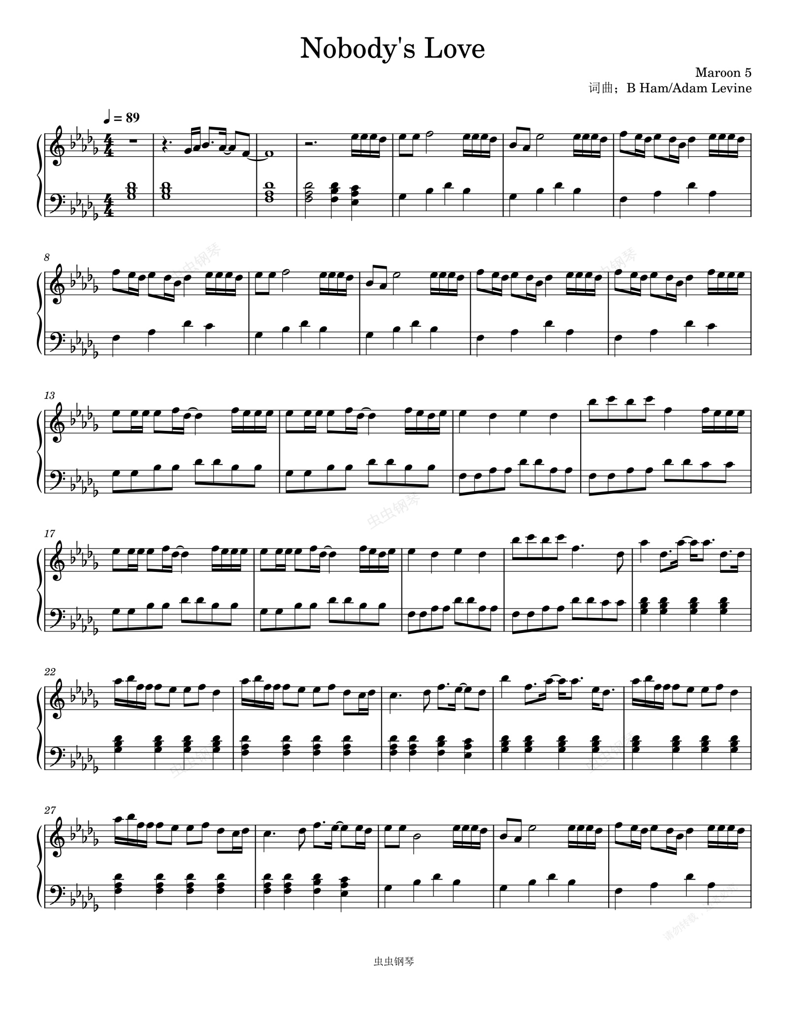 钢琴谱:Nobodys Love-Maroon 5