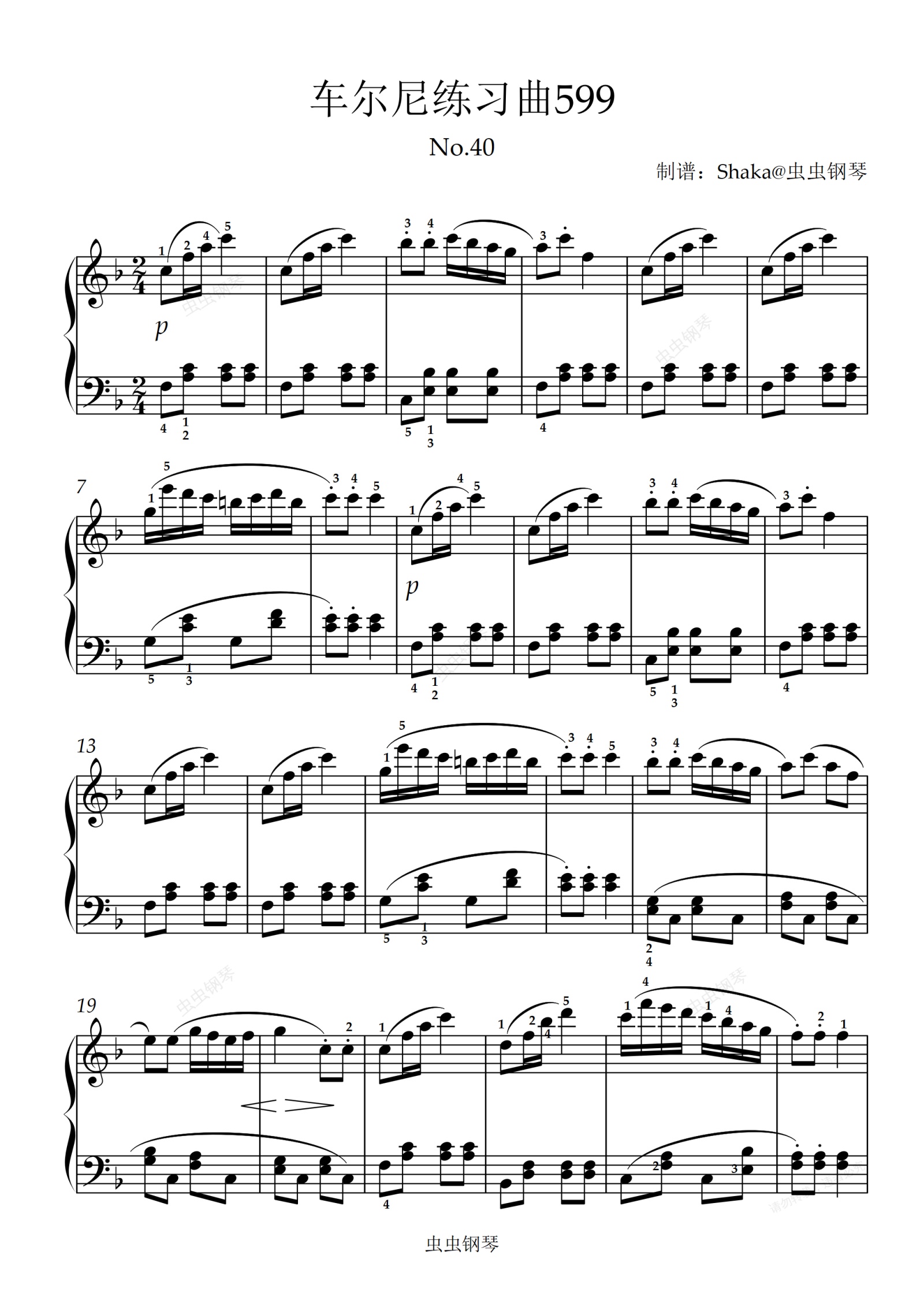 钢琴谱:车尔尼练习曲599 No.40 完美还原 带指法