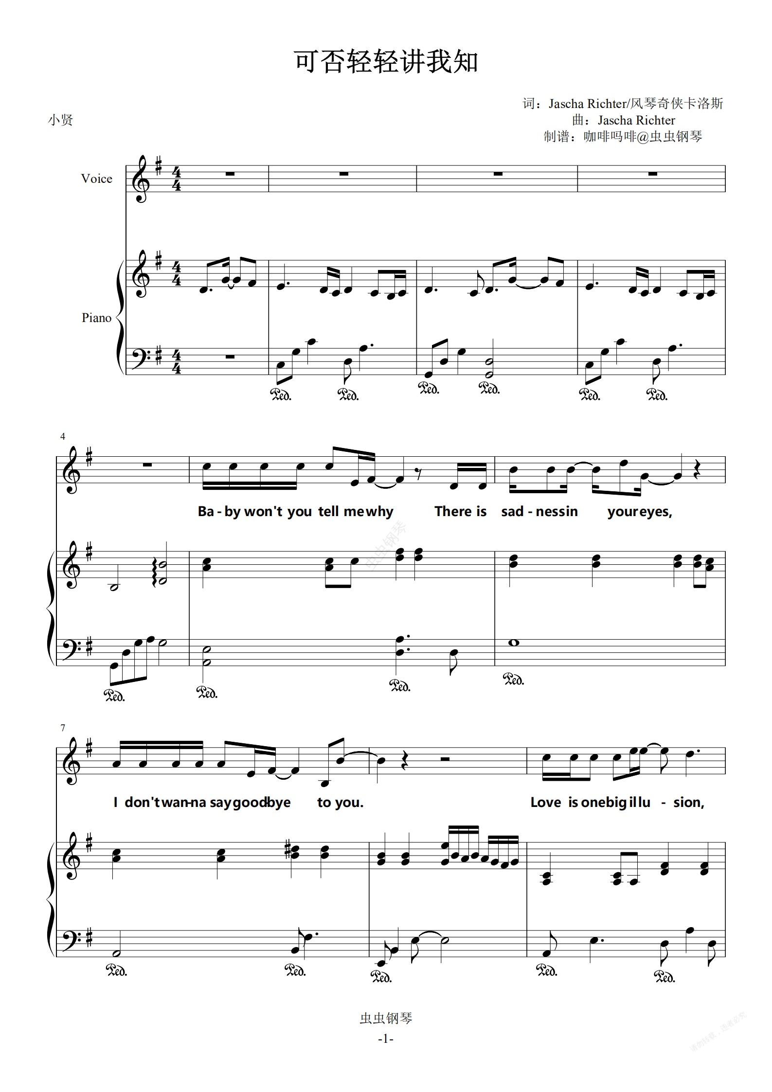 钢琴谱:可否轻轻讲我知-小贤G调弹唱谱