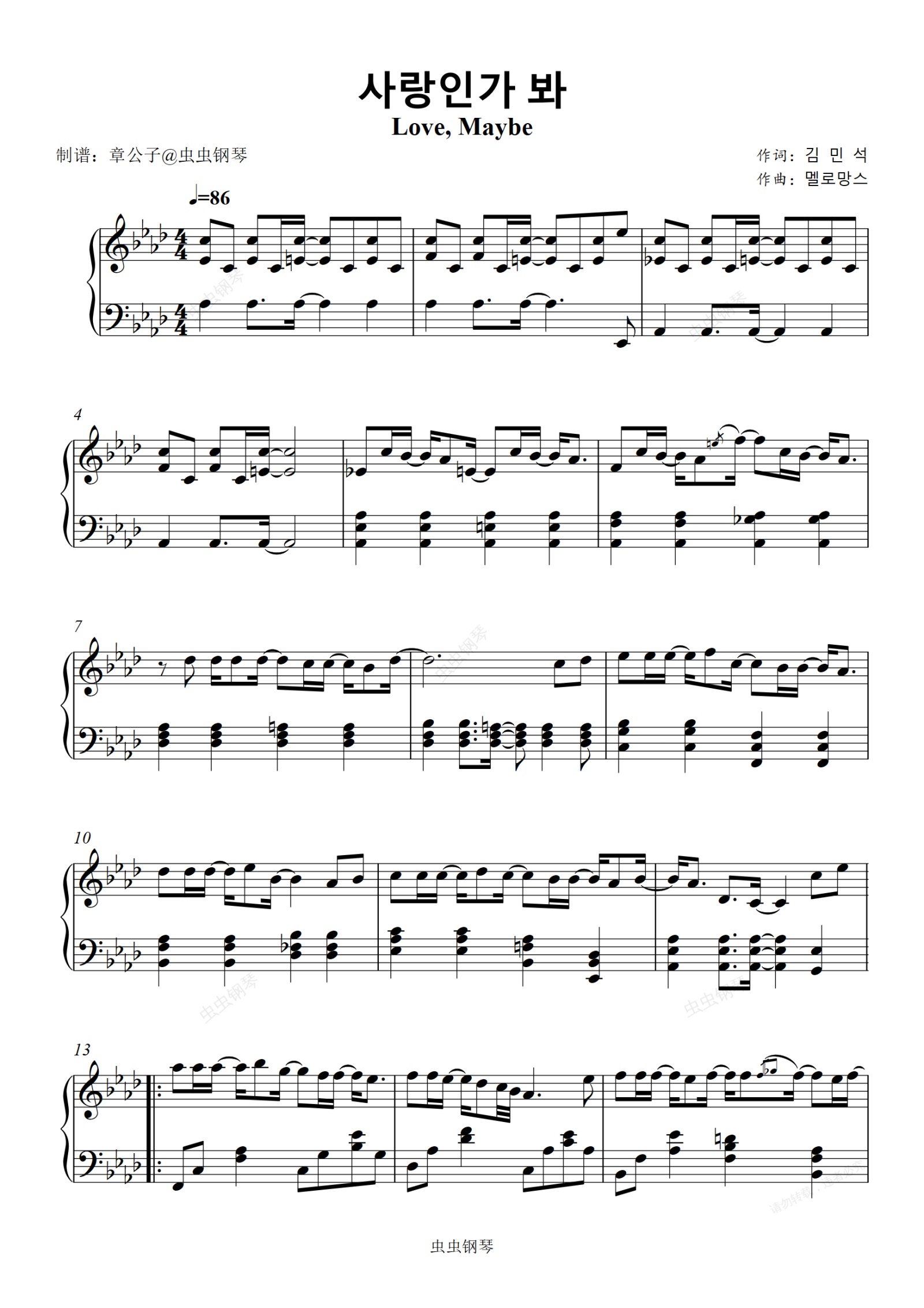 钢琴谱:《사랑인가 봐》(Love, Maybe) - 韩剧《社内相亲》OST 钢琴独奏谱