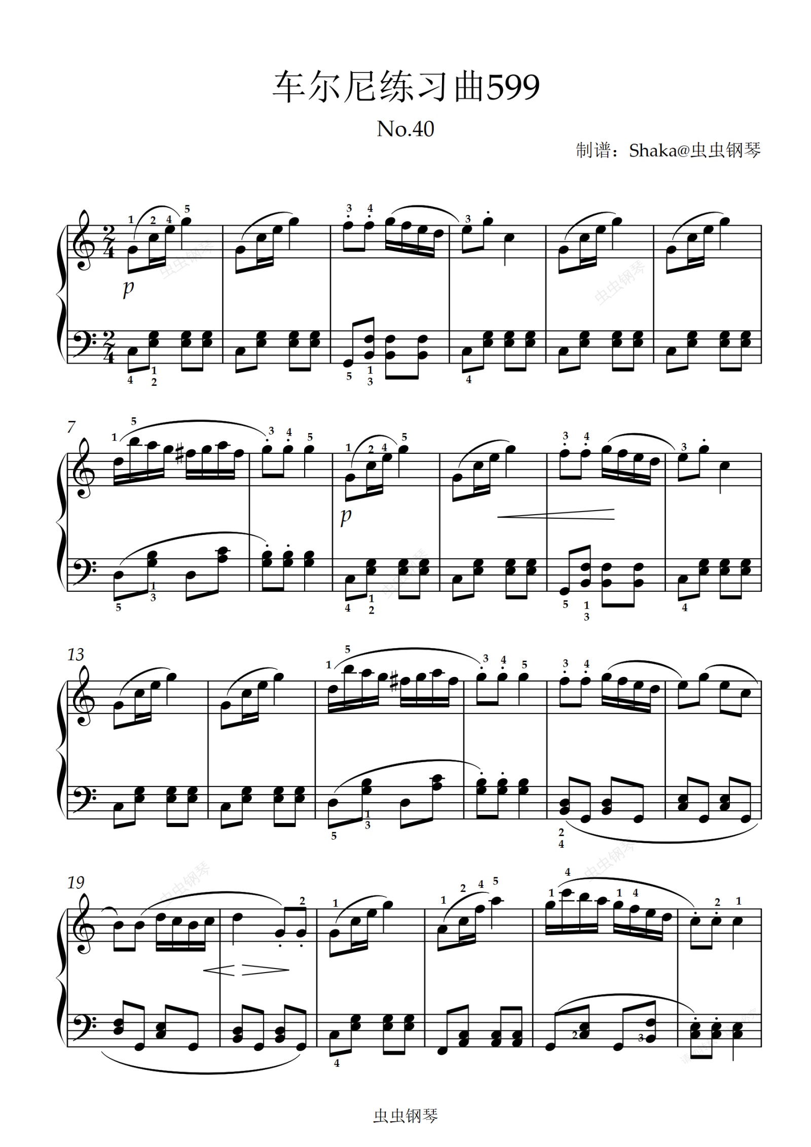 钢琴谱:车尔尼练习曲599 No.40 C调版带指法