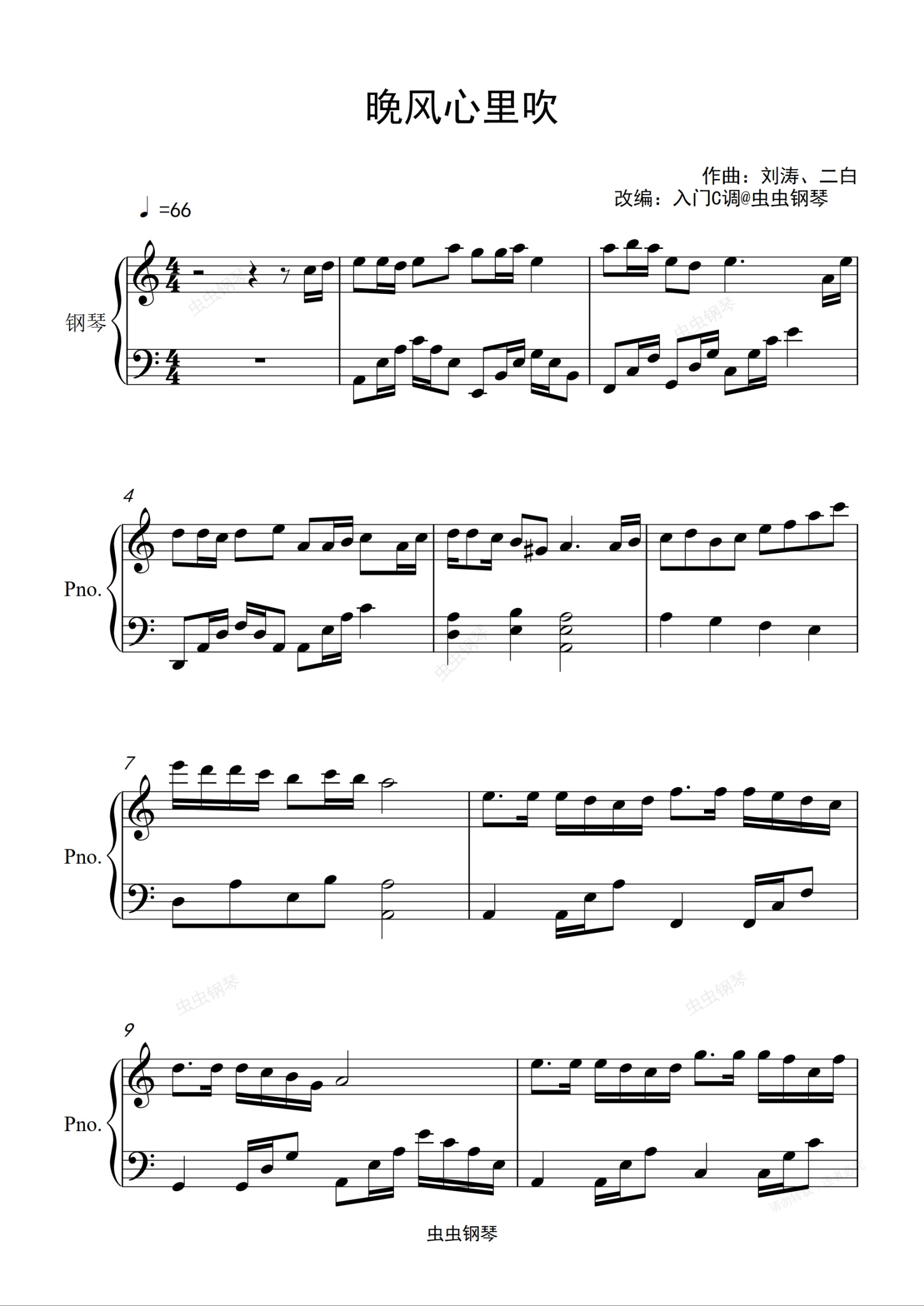 钢琴谱:阿梨粤《晚风心里吹》入门C调好听版