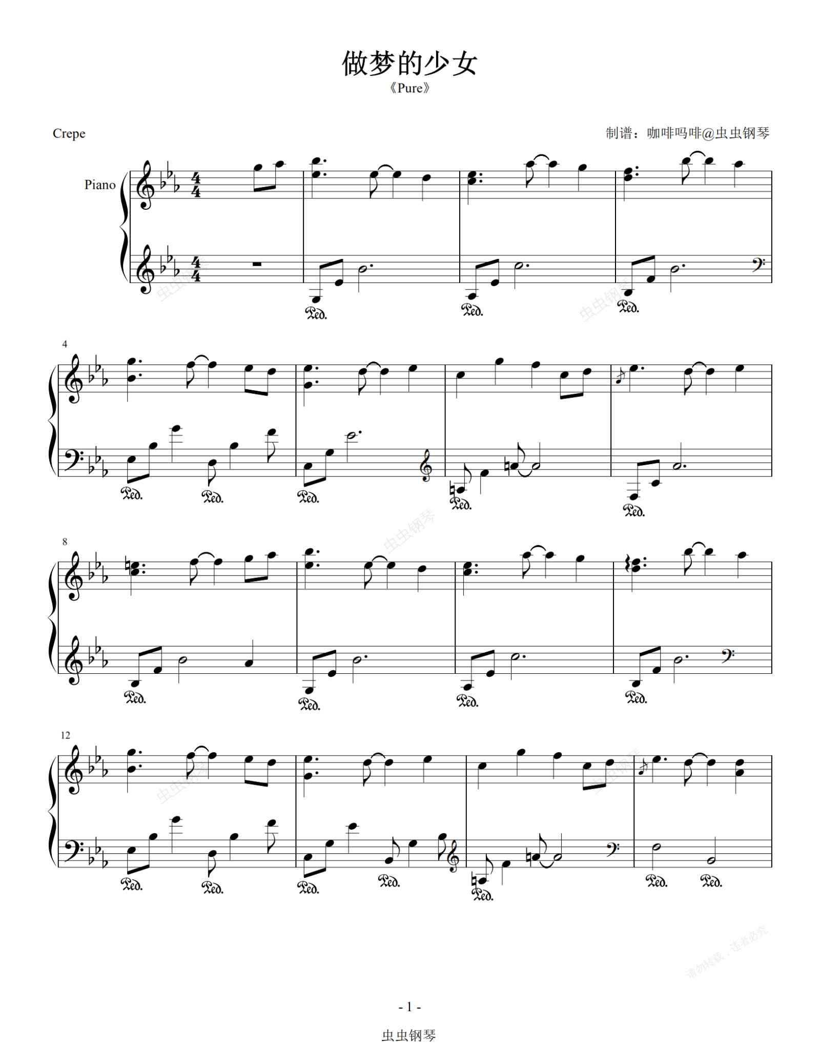 钢琴谱:做梦的少女- Crepe 钢琴独奏谱