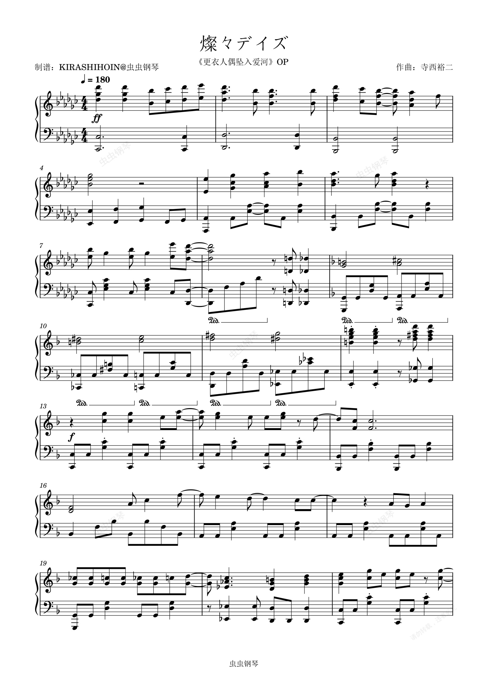 钢琴谱:燦々デイズ(《更衣人偶坠入爱河》OP/片头曲)- Spira Spica