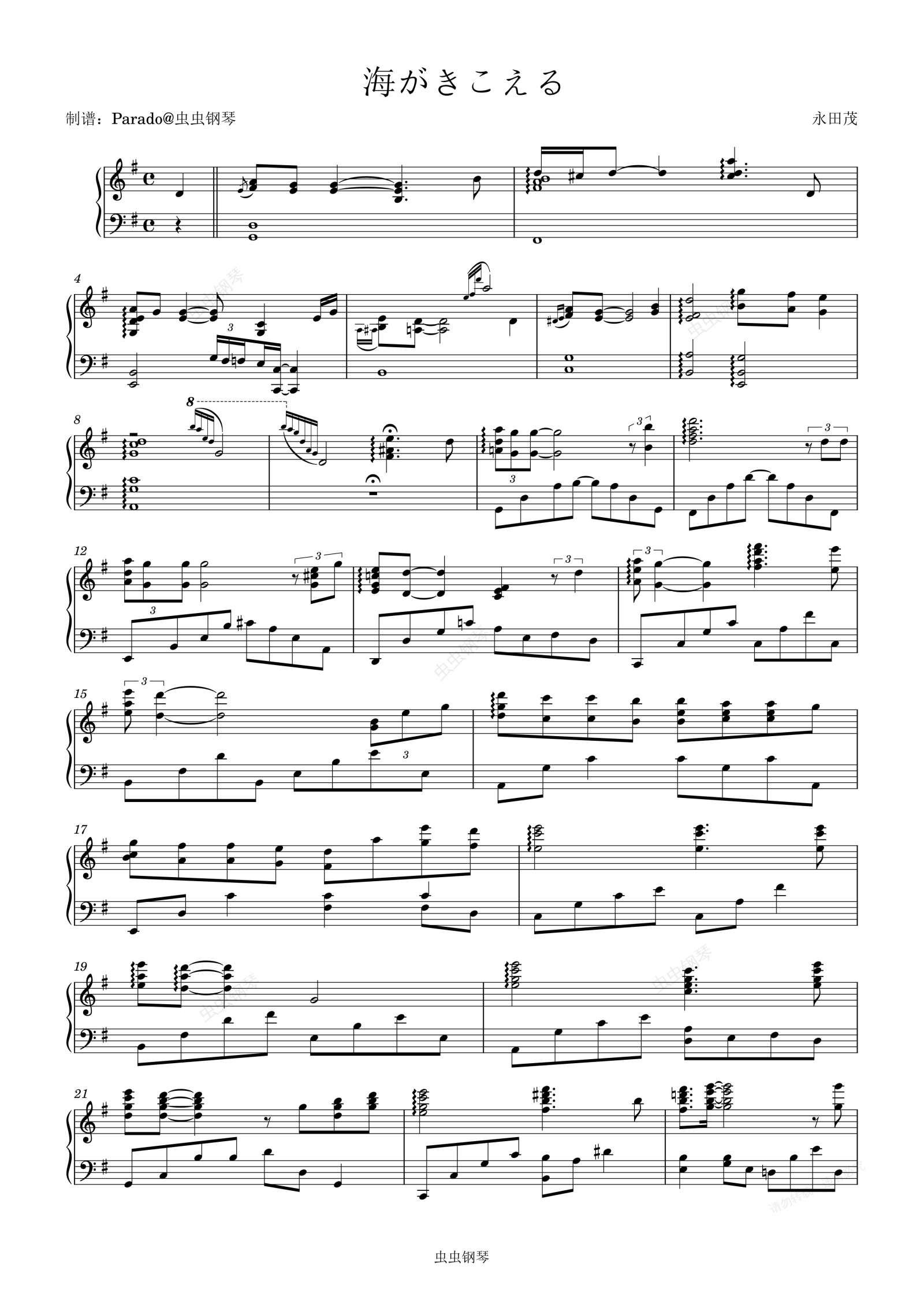 钢琴谱:海がきこえる《听到涛声》- 永田茂