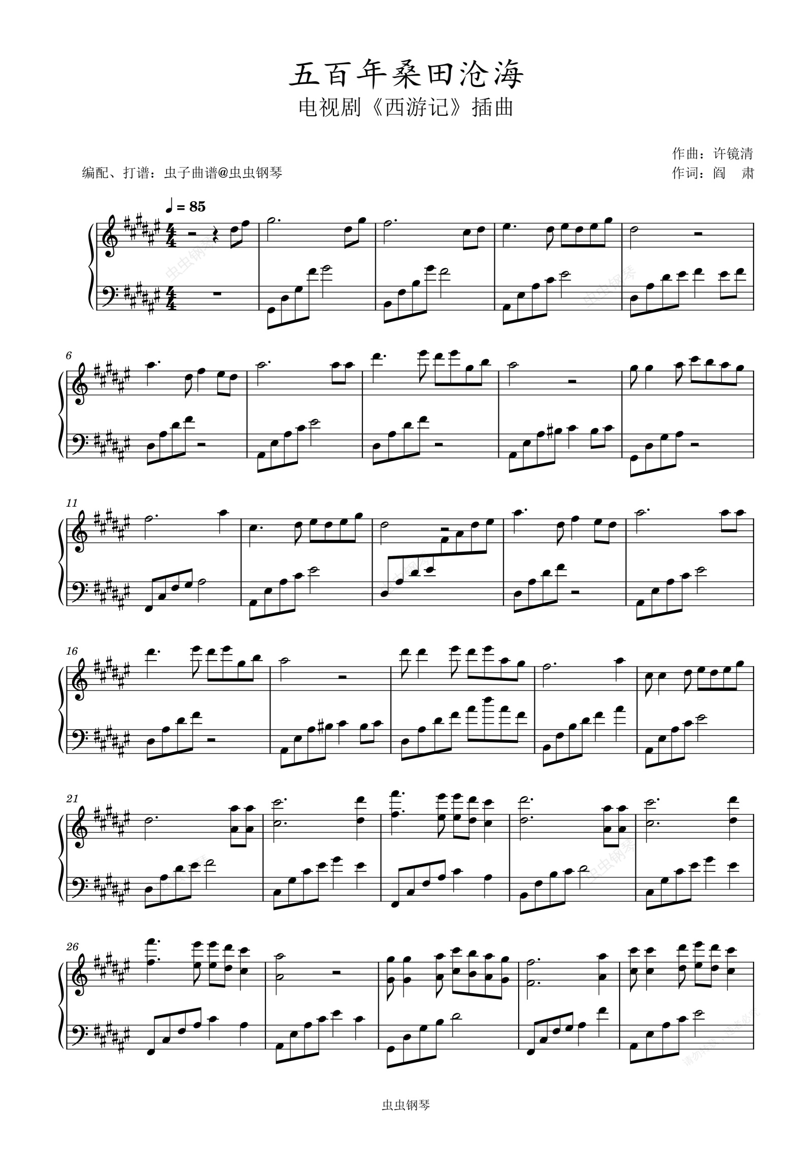钢琴谱:五百年桑田沧海 (原调唯美抒情)西游记插曲