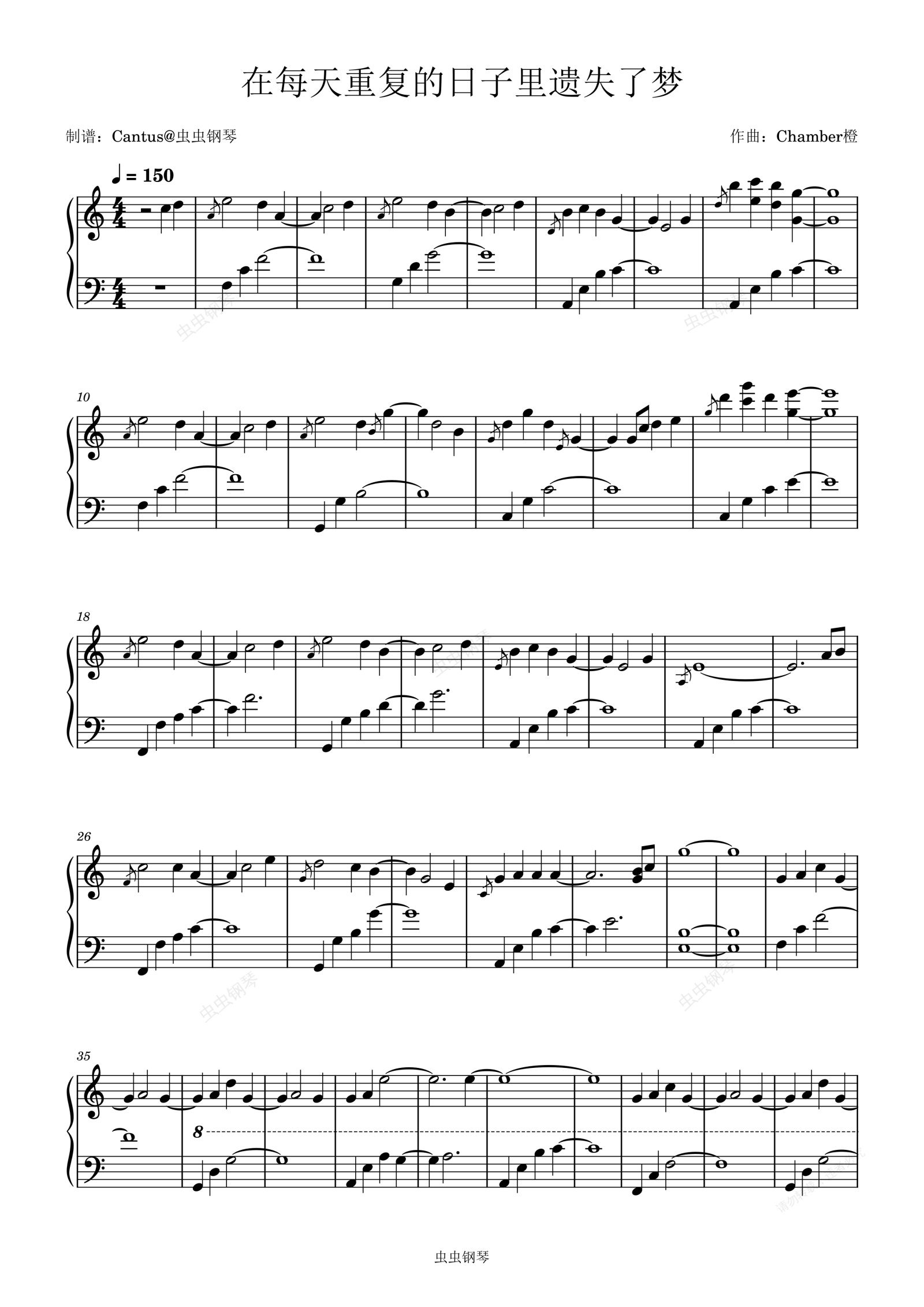 钢琴谱:在每天重复的日子里遗失了梦-Chamber橙