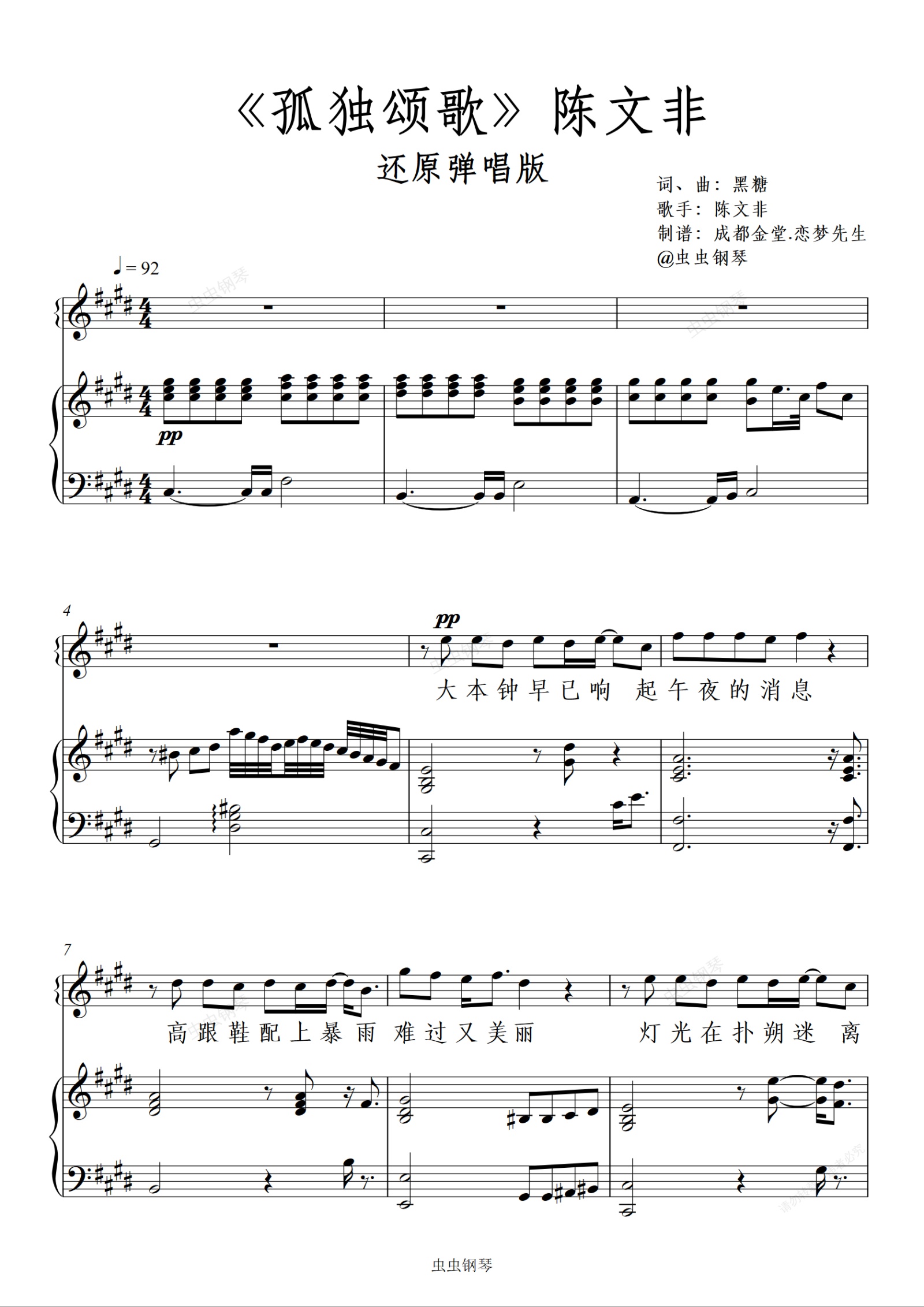 钢琴谱:《孤独颂歌》陈文非-还原弹唱版