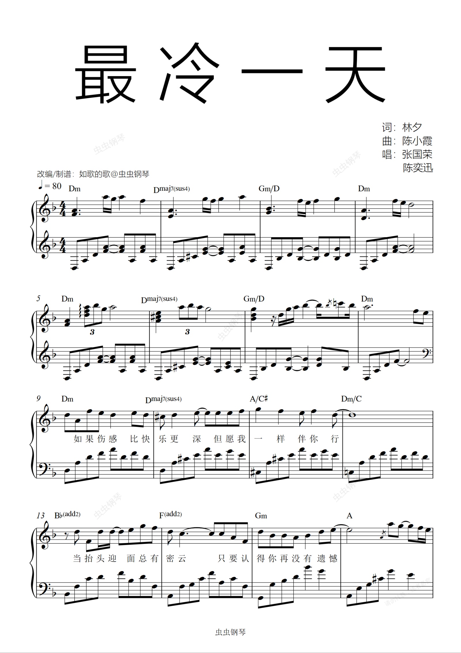 钢琴谱:《最冷一天》原调可弹可唱港乐精作