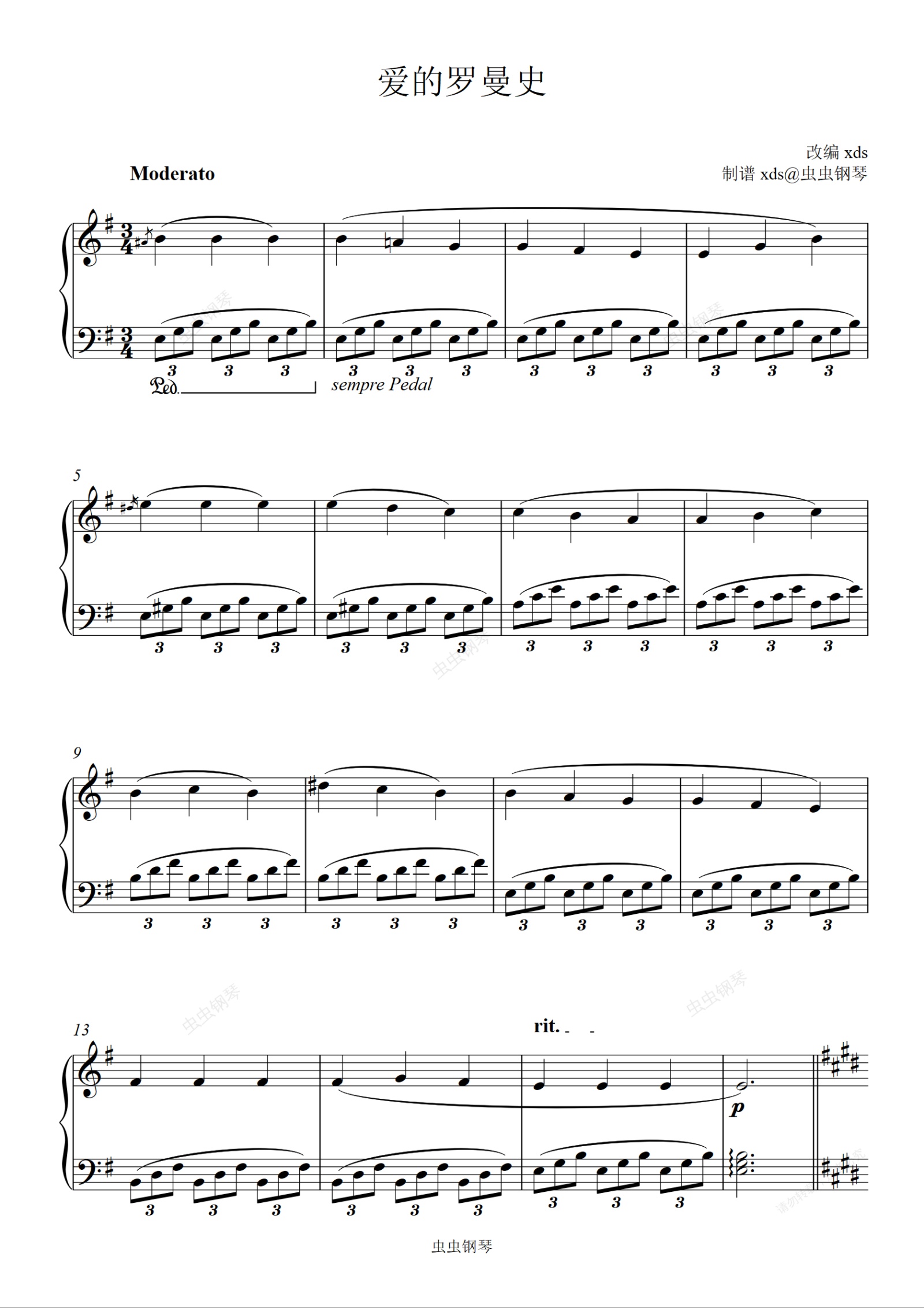 A段主题e小调,由一个主和弦开始,下行音阶式的旋律缓缓进行着情绪平静,恍如被轻风吹动的湖水,泛起阵阵涟漪,缓缓地流向远方……
