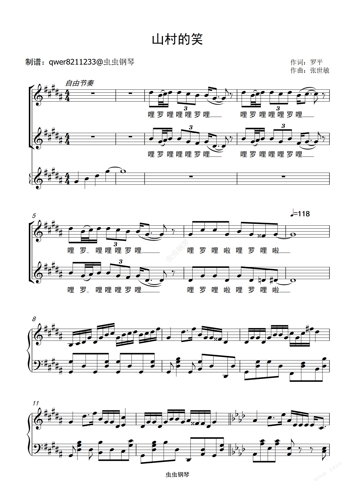 钢琴谱:山村的笑(双声部正谱)