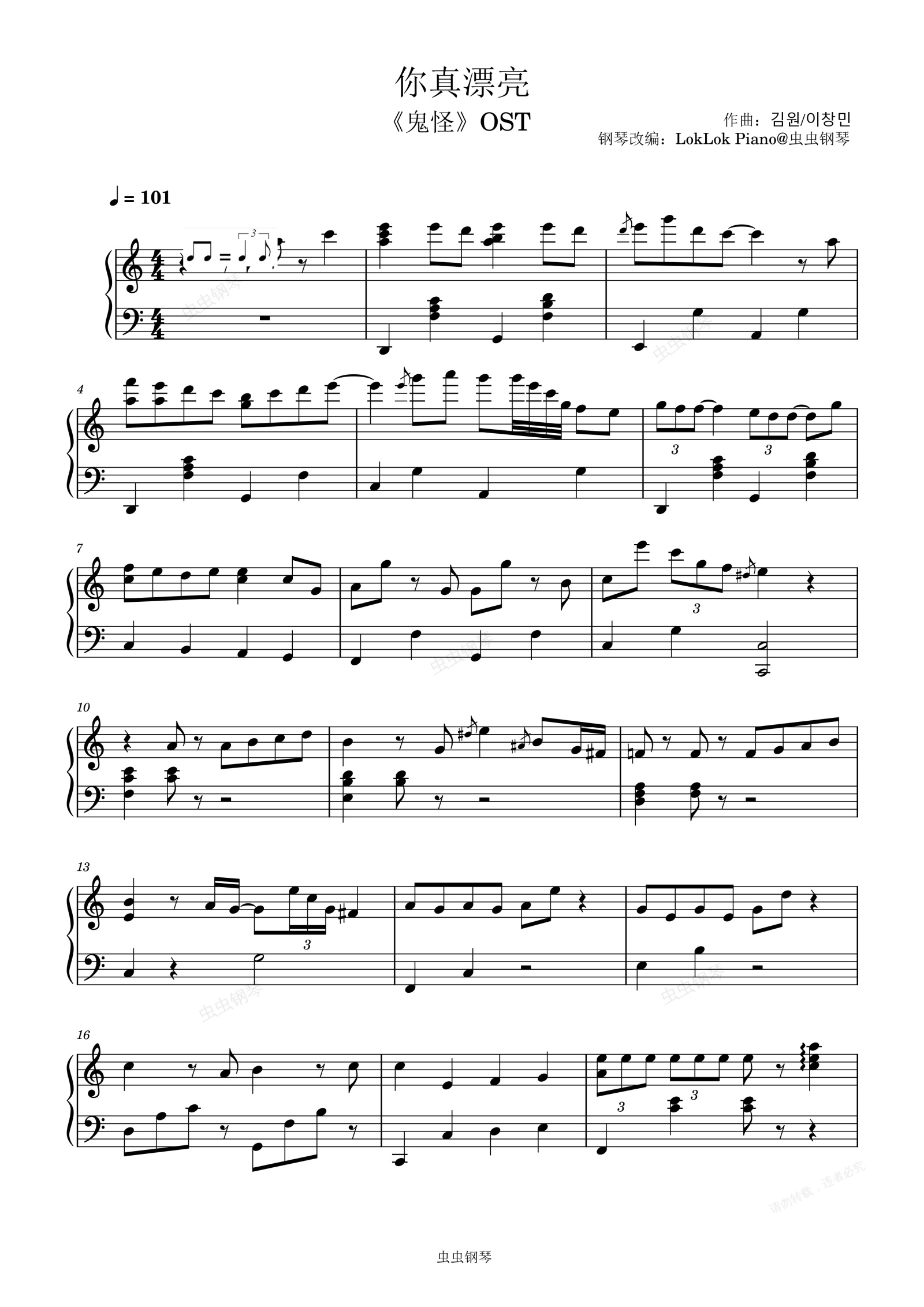 钢琴谱:你真漂亮 — 《鬼怪》插曲