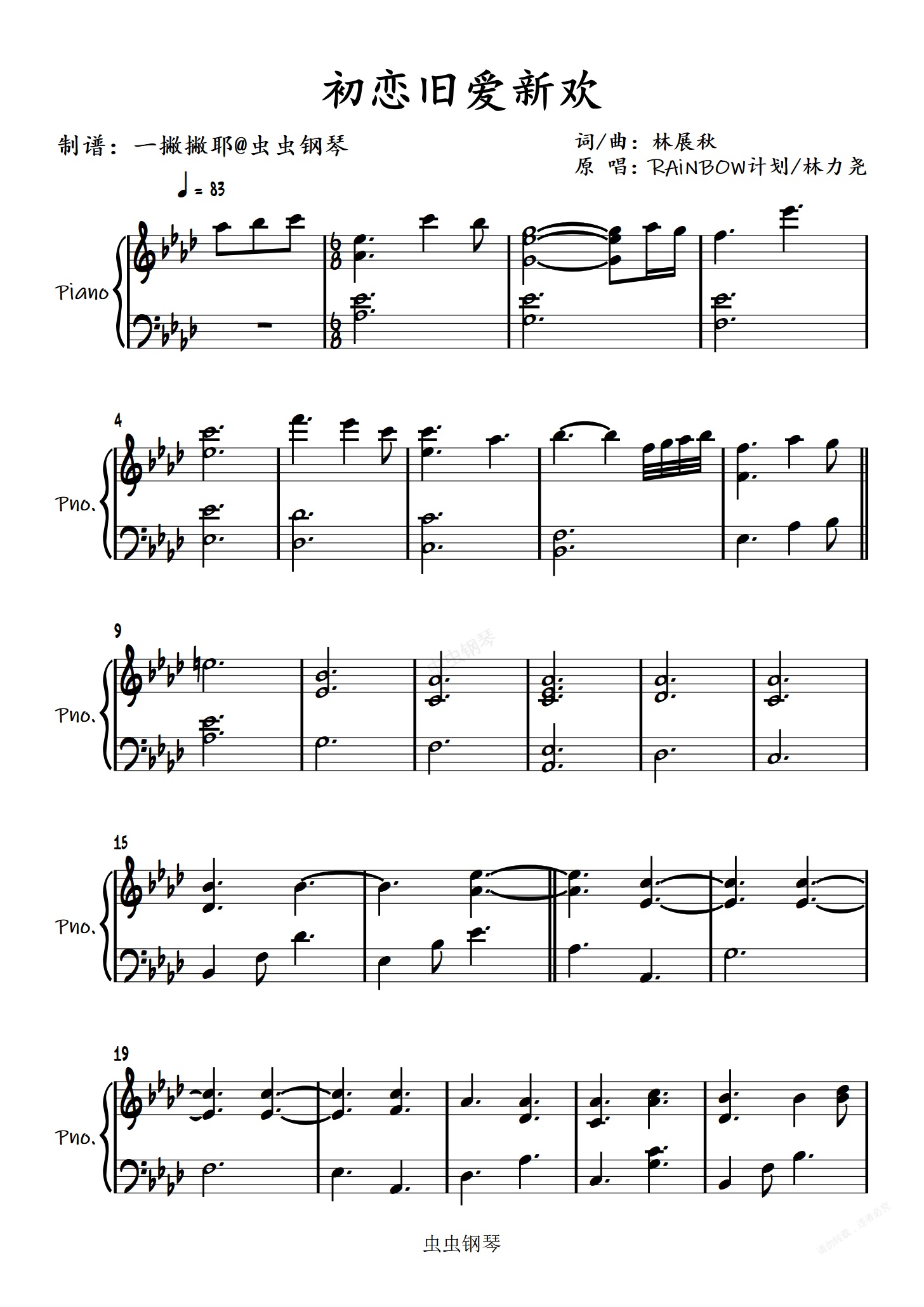 钢琴谱:初恋旧爱新欢【极限还原伴奏】RAiNBOW计划/林力尧「一撇撇耶」