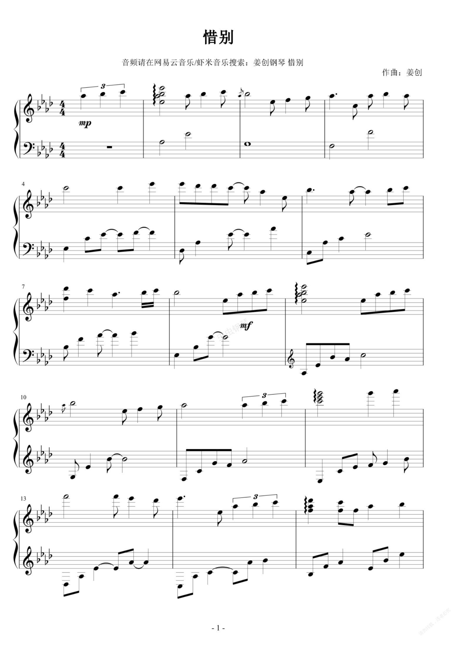 钢琴谱:《惜别》-姜创钢琴原创-钢琴谱