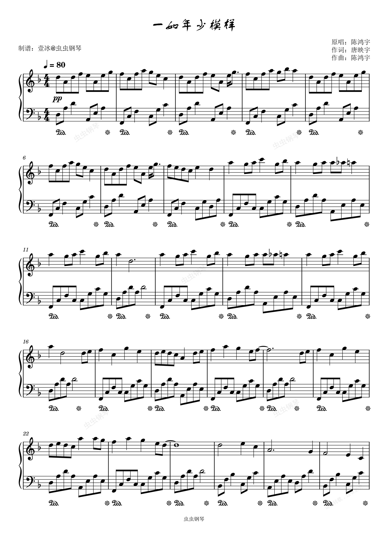 钢琴谱:一如年少模样//陈鸿宇-原调