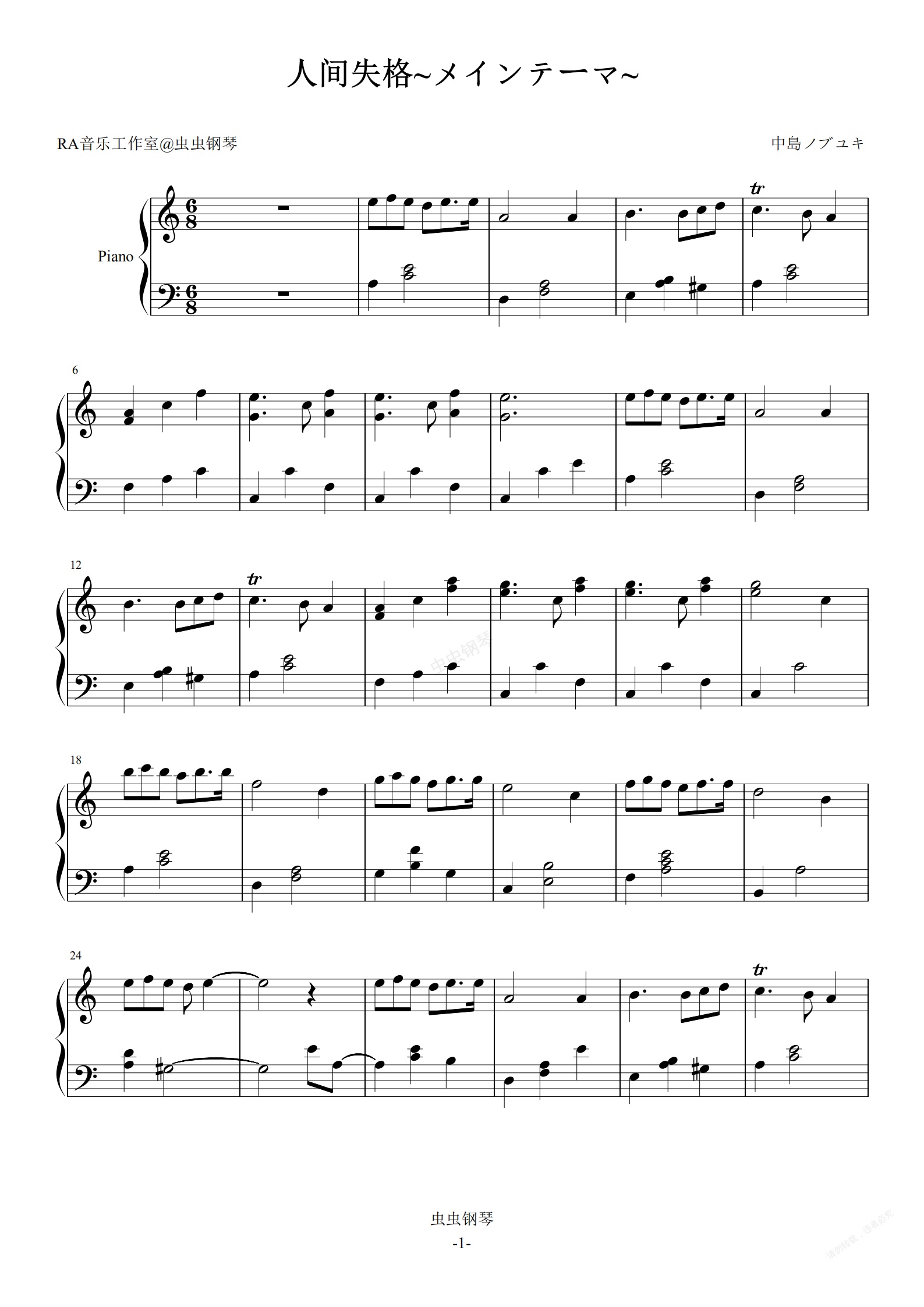 钢琴谱:人间失格~メインテーマ~-中島ノブユキ-演奏谱