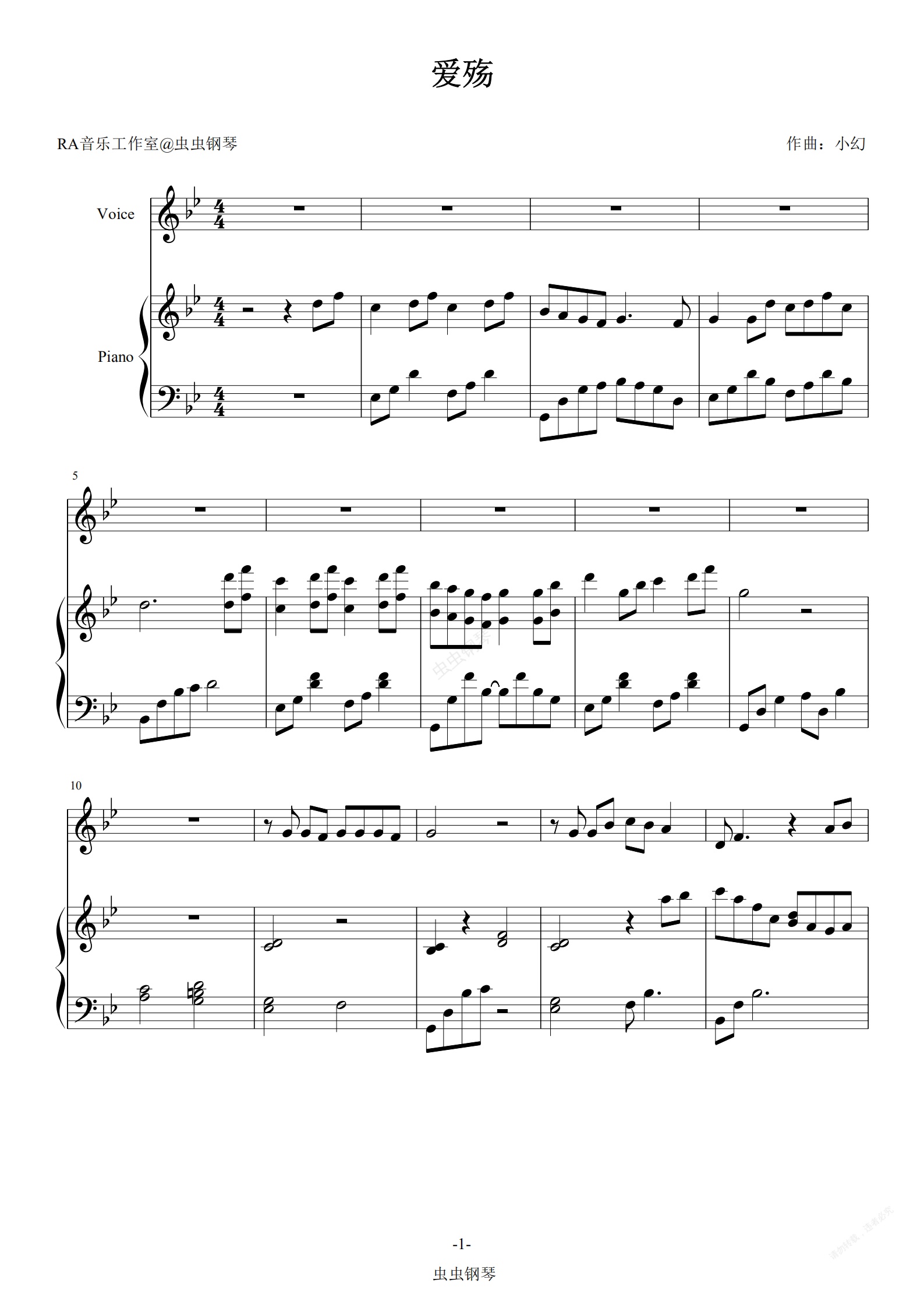 钢琴谱:爱殇-小时-伴奏谱