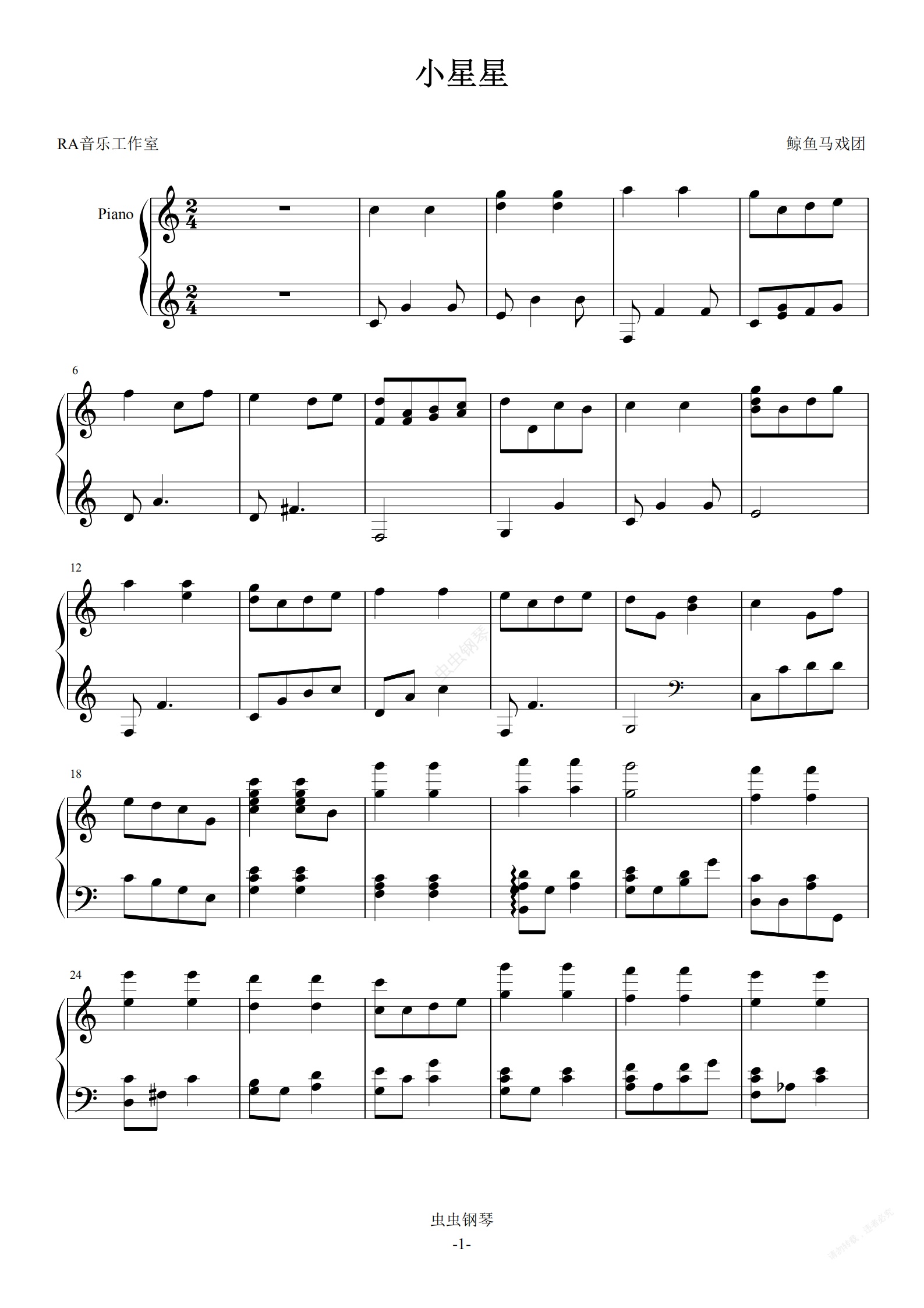 钢琴谱:小星星-鲸鱼马戏团-演奏谱