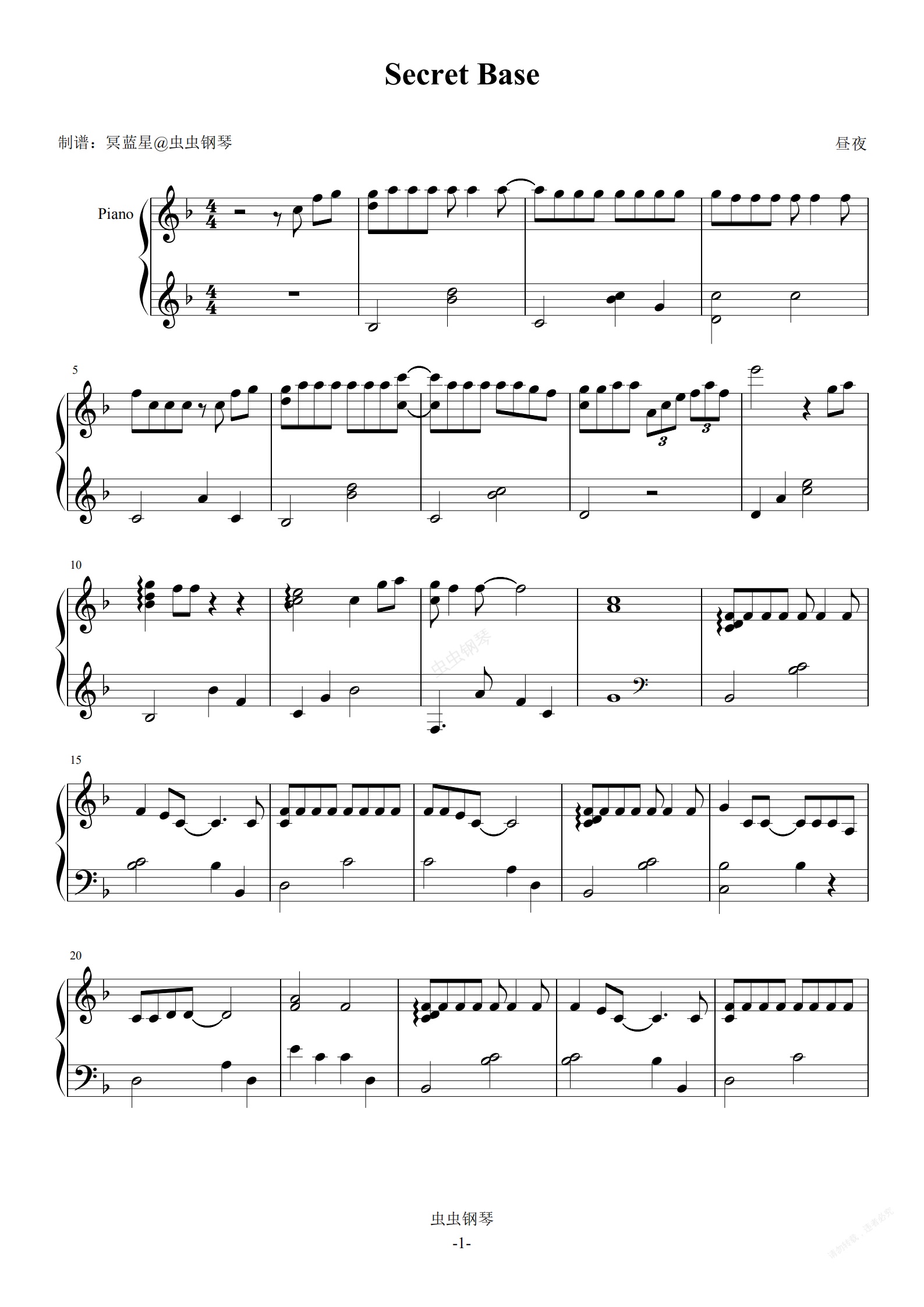 钢琴谱:Secret Base-昼夜版