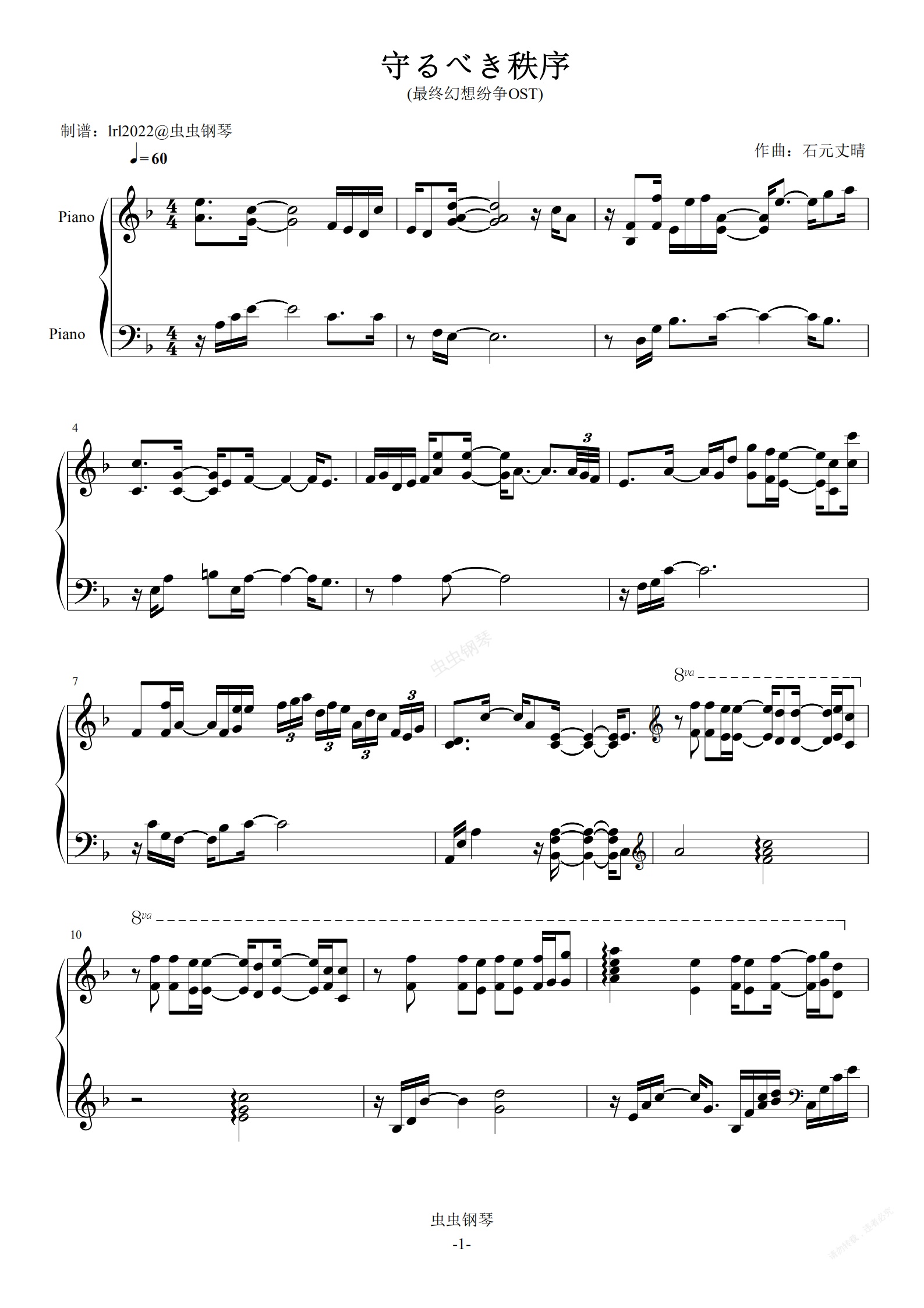 钢琴谱:守るべき秩序-石元丈晴-最终幻想纷争OST-需守护的秩序