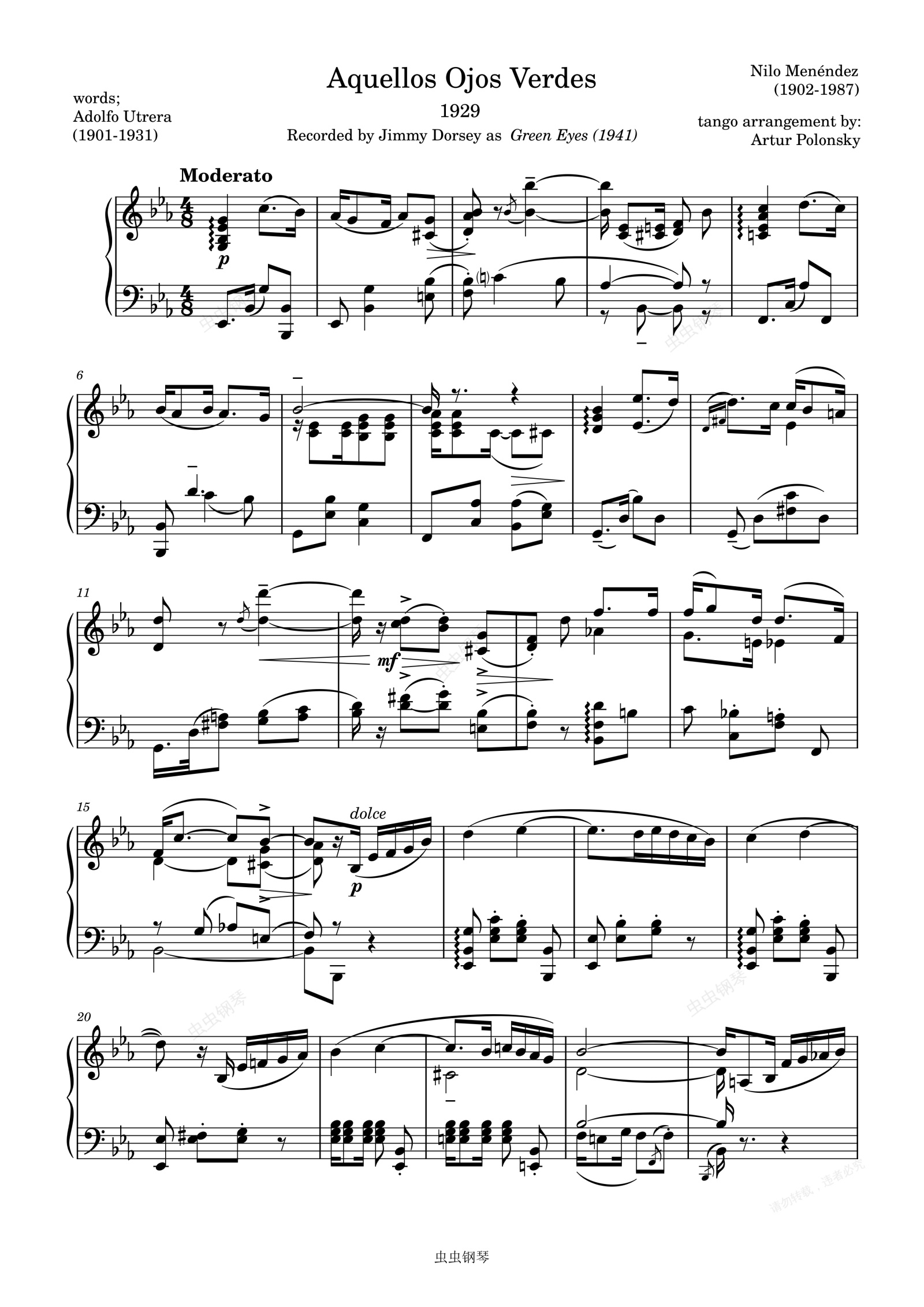 钢琴谱:Aquellos Ojos Verdes-Adolfo Utrera