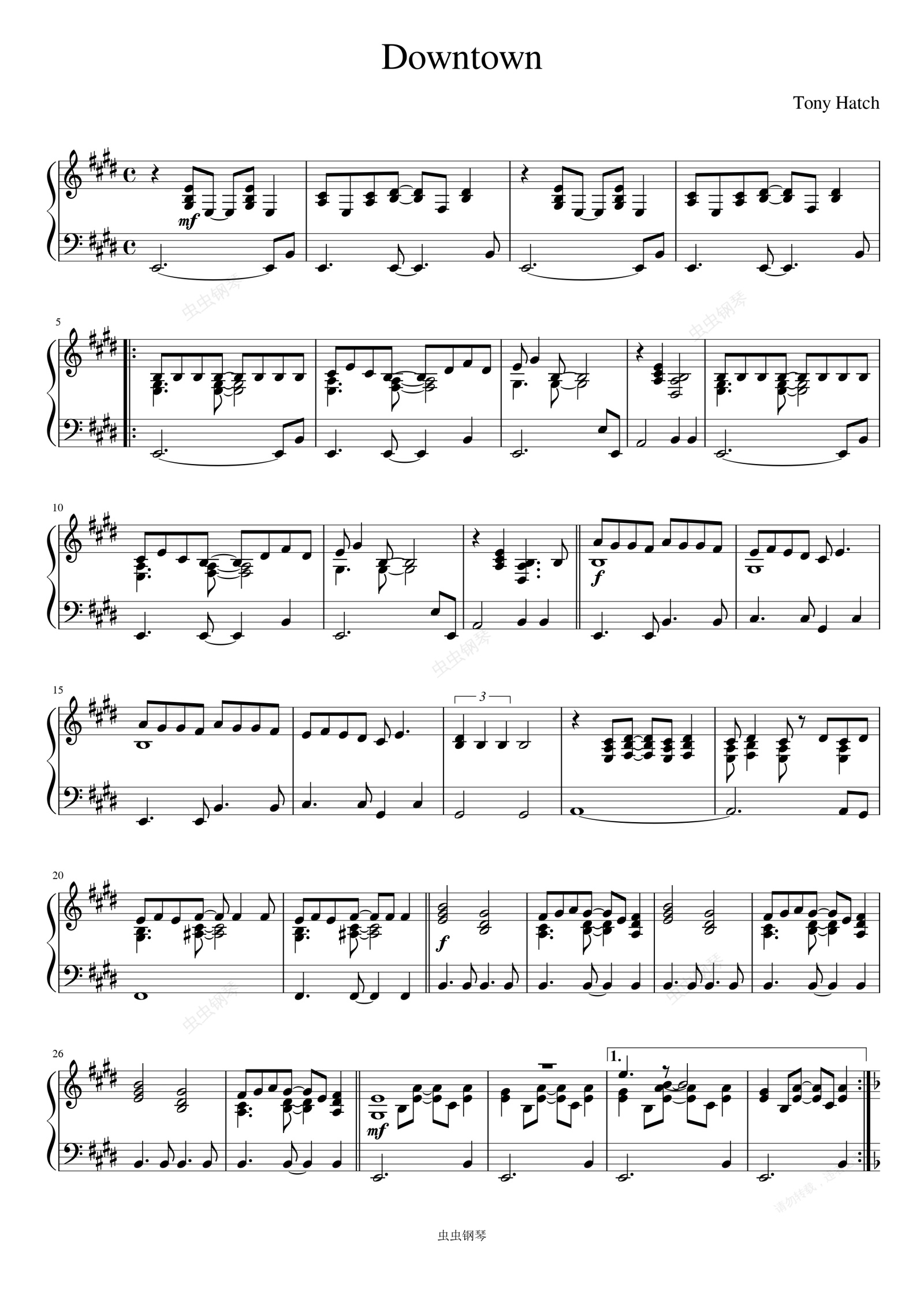 钢琴谱:Downtown-Tony Hatch