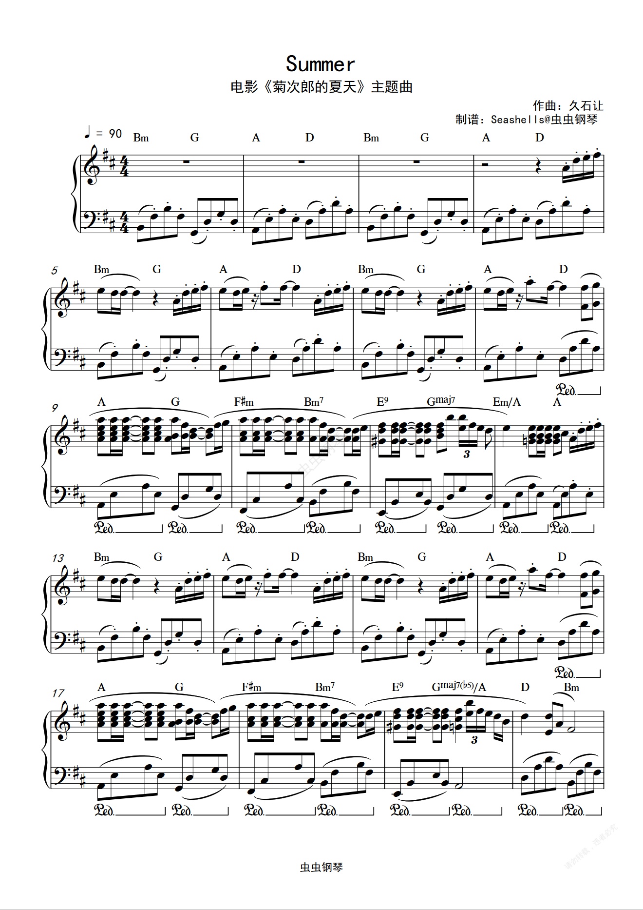 钢琴谱:久石让-《Summer》原版钢琴独奏谱