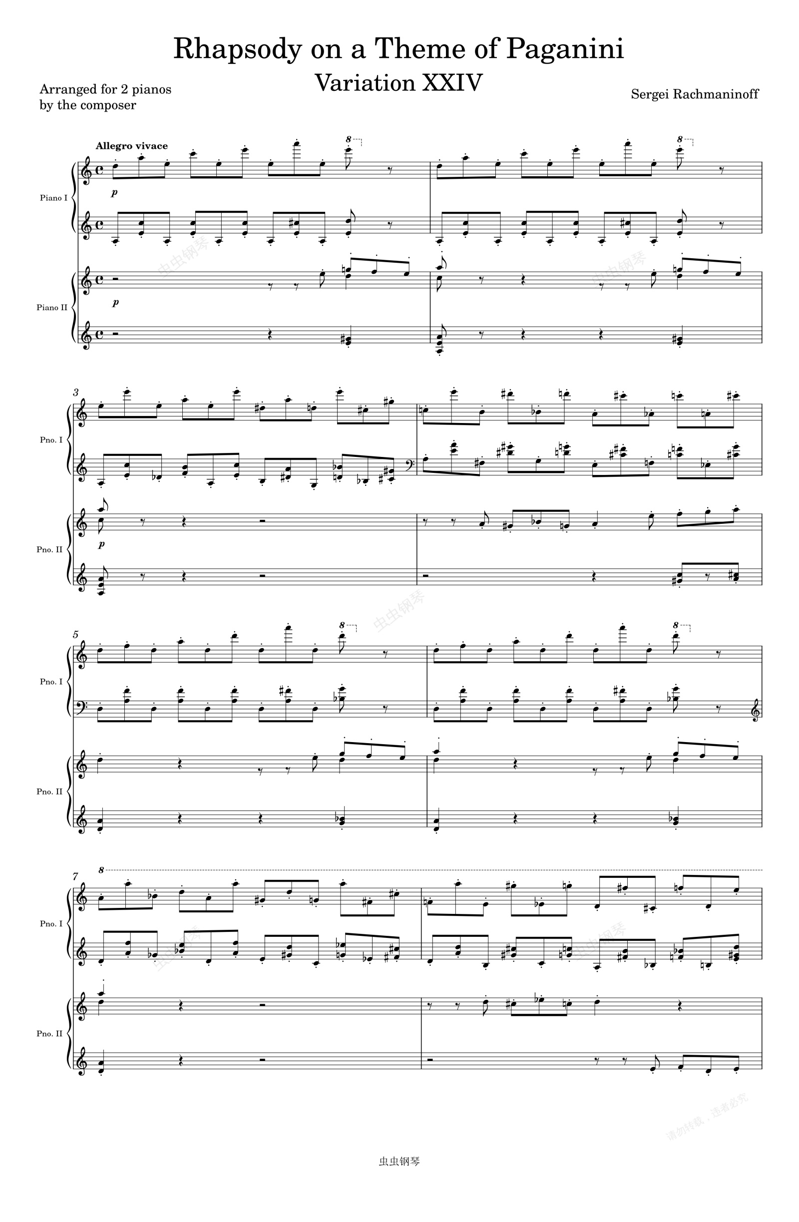 钢琴谱:Rachmaninoff Variation 24 on a Theme of Paganini (Arr. for 2 pianos)