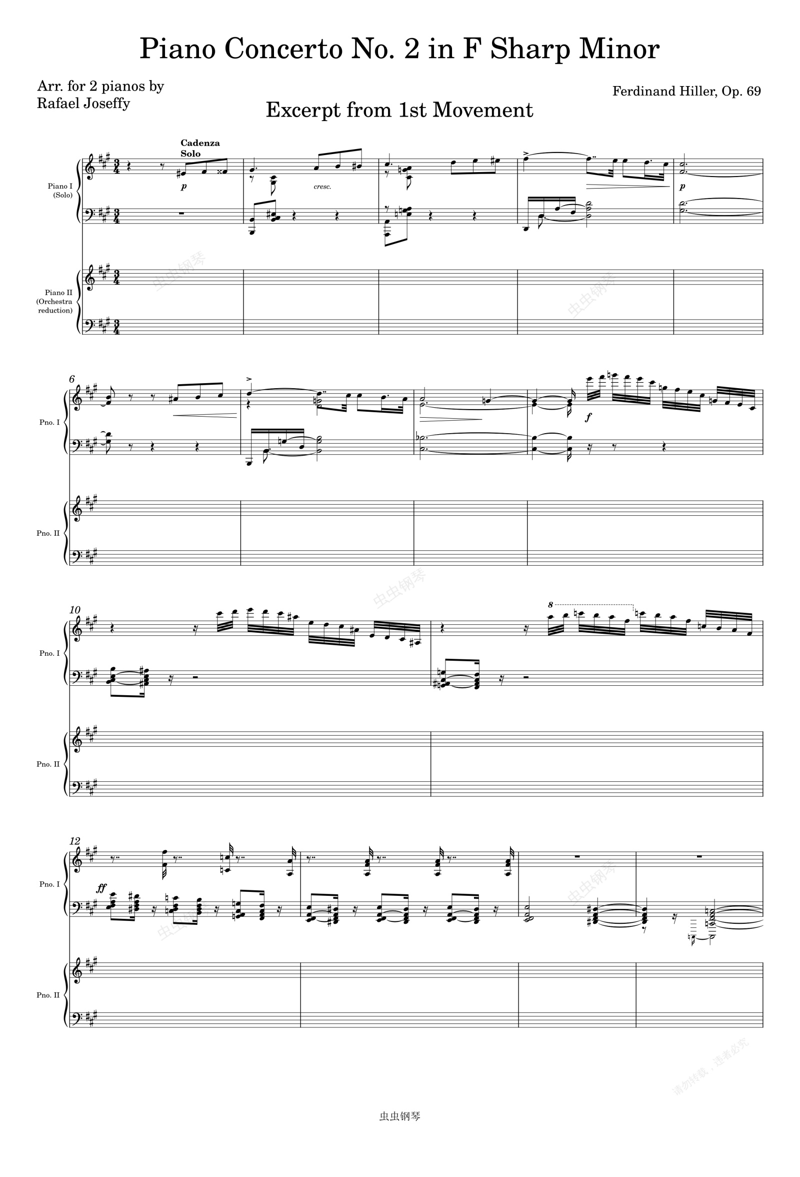 钢琴谱:Hiller Piano Concerto No. 2 in F Sharp Minor (Arr. for 2 pianos)
