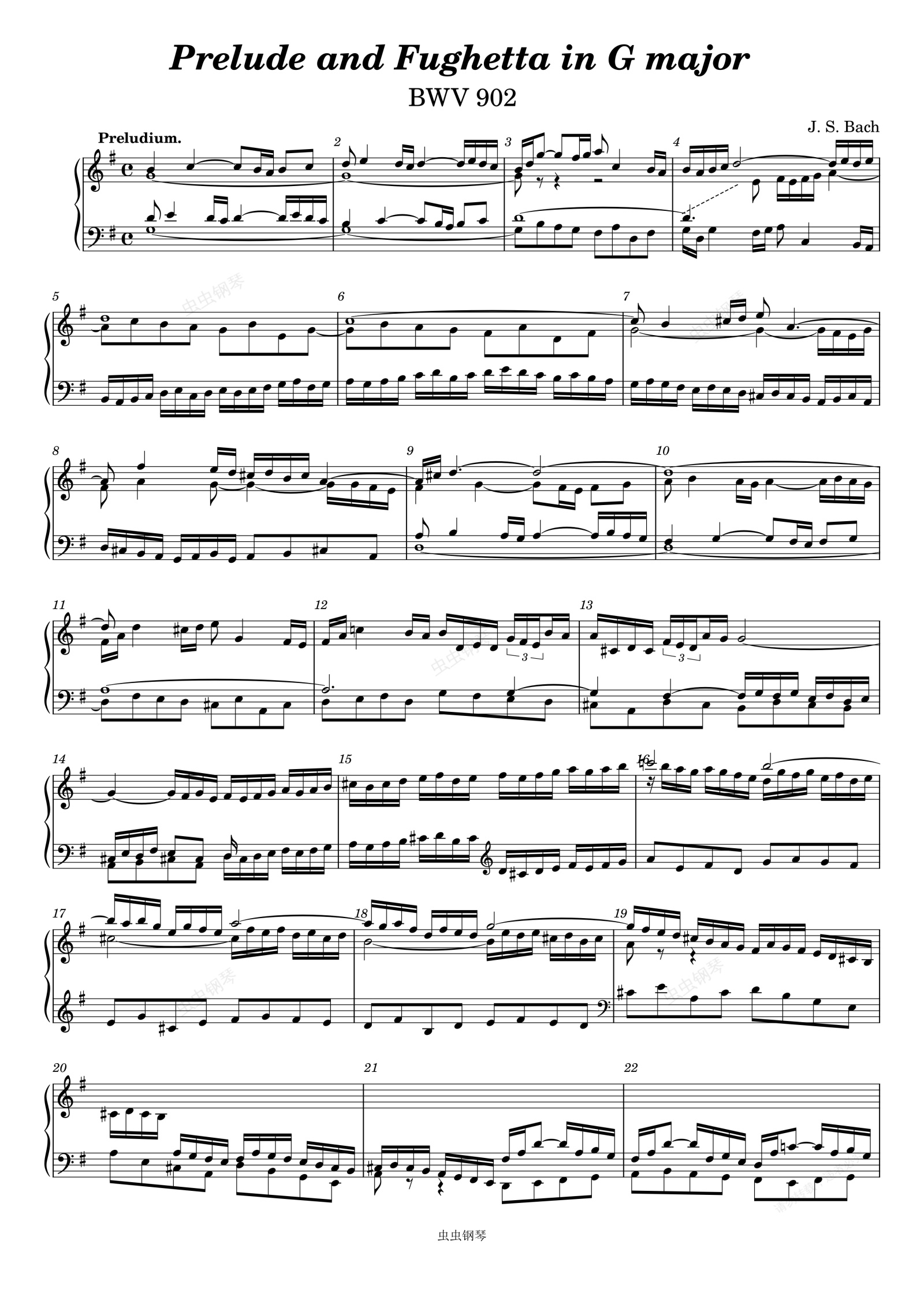 钢琴谱:J. S. Bach: Prelude and Fughetta in G major, BWV 902