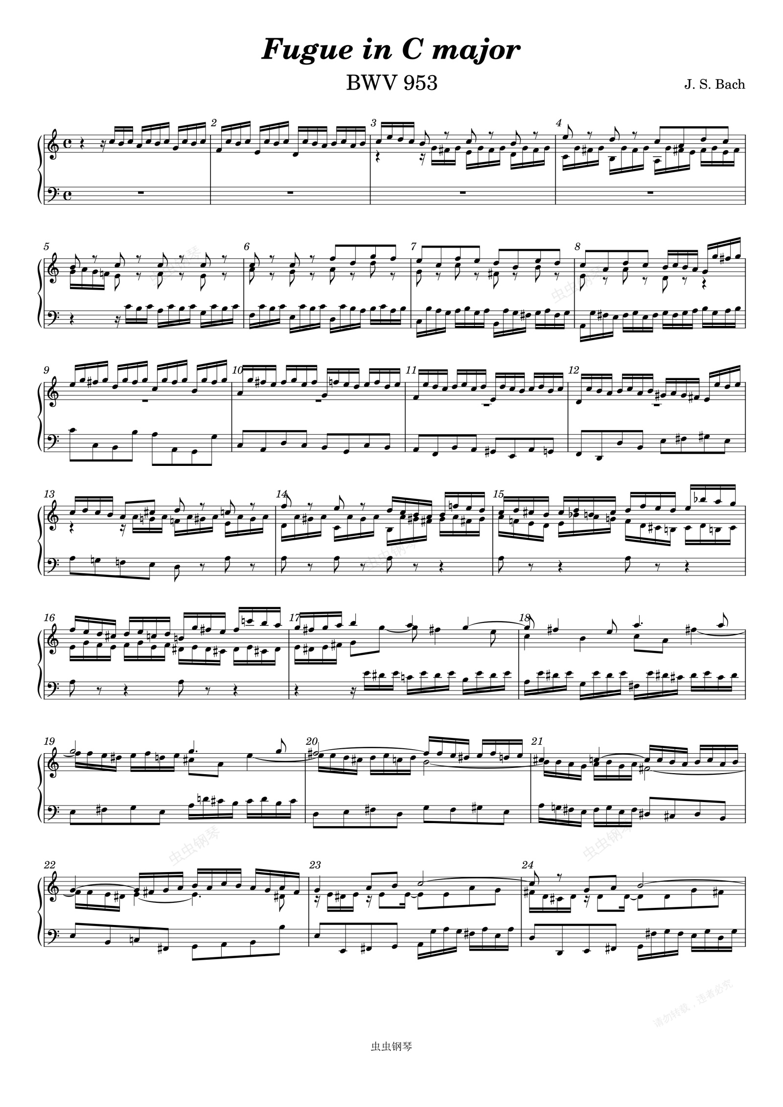 钢琴谱:J. S. Bach: Fugue in C major, BWV 953