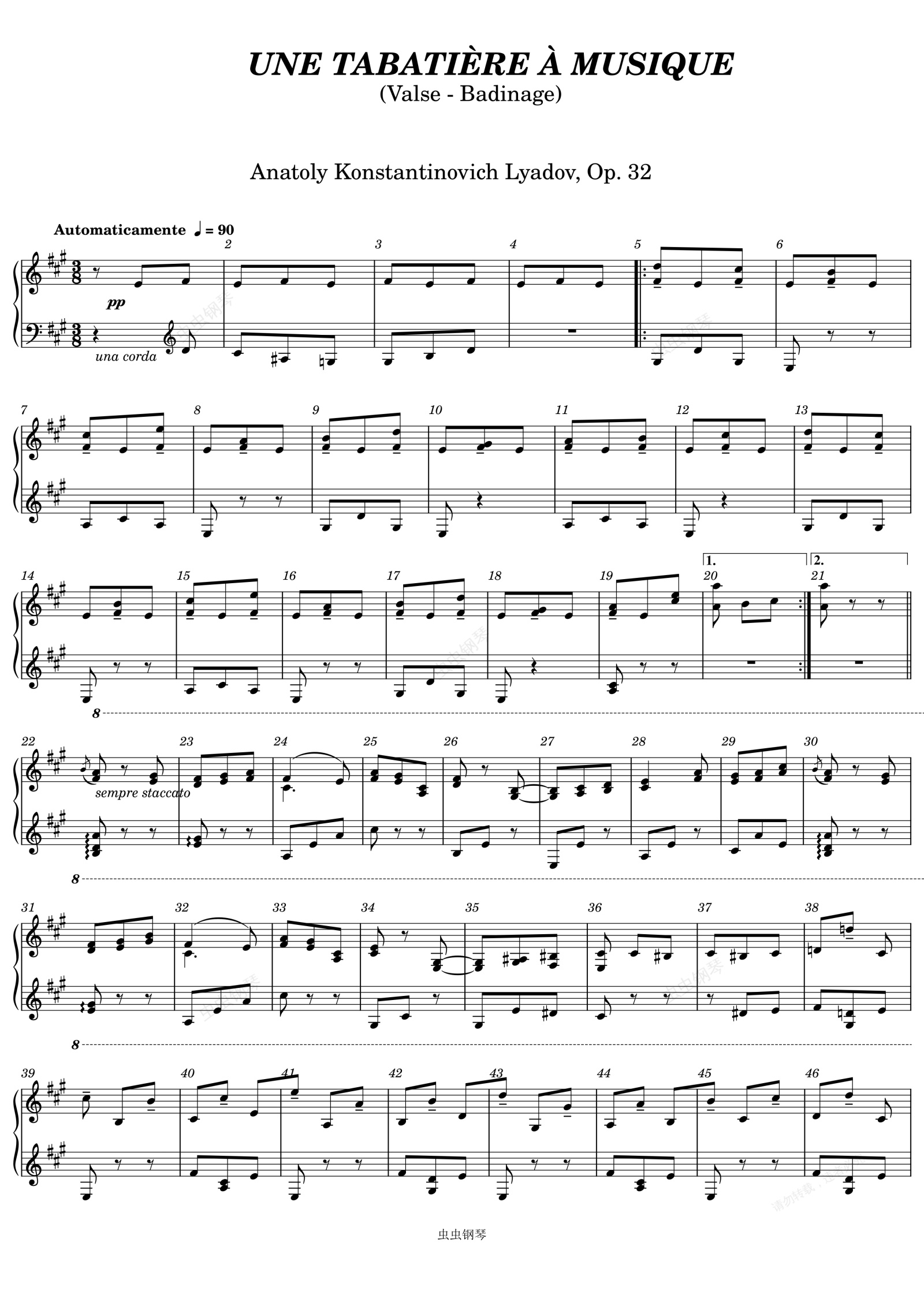 钢琴谱:Anatoly Lyadow: Une Tabatière à Musique (Valse-Badinage), Op.32