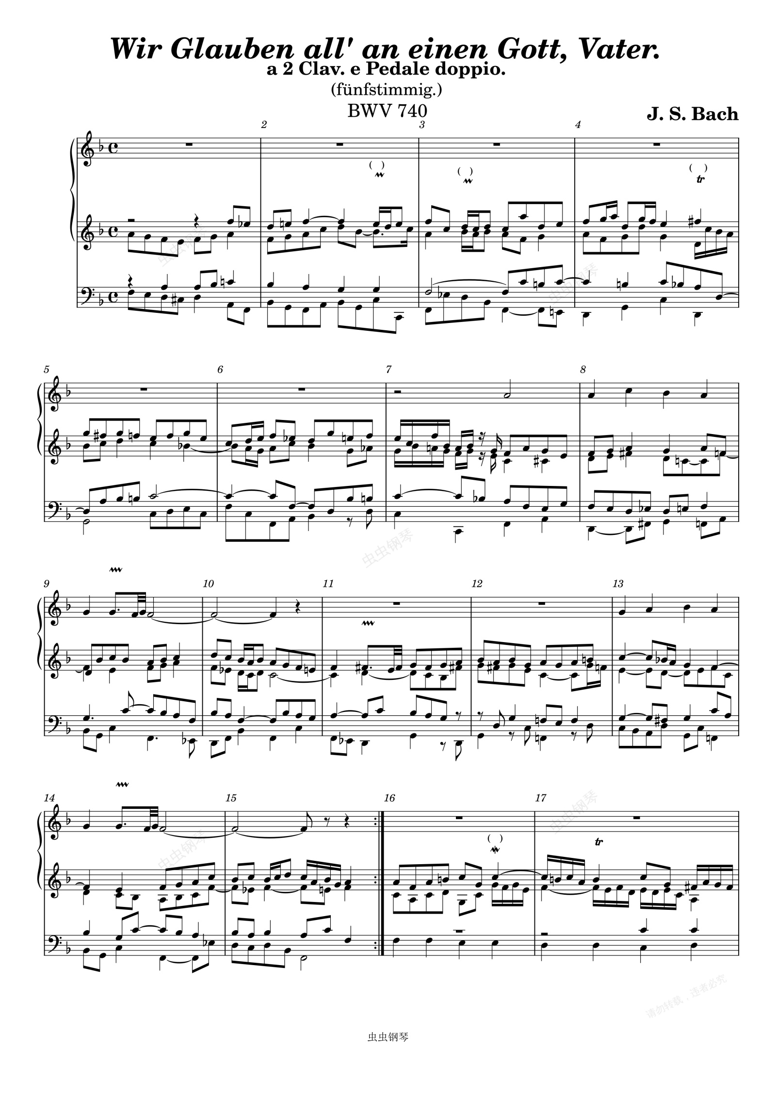 钢琴谱:J. S. Bach: Wir Glauben all, an einen Gott, Vater, BWV 740