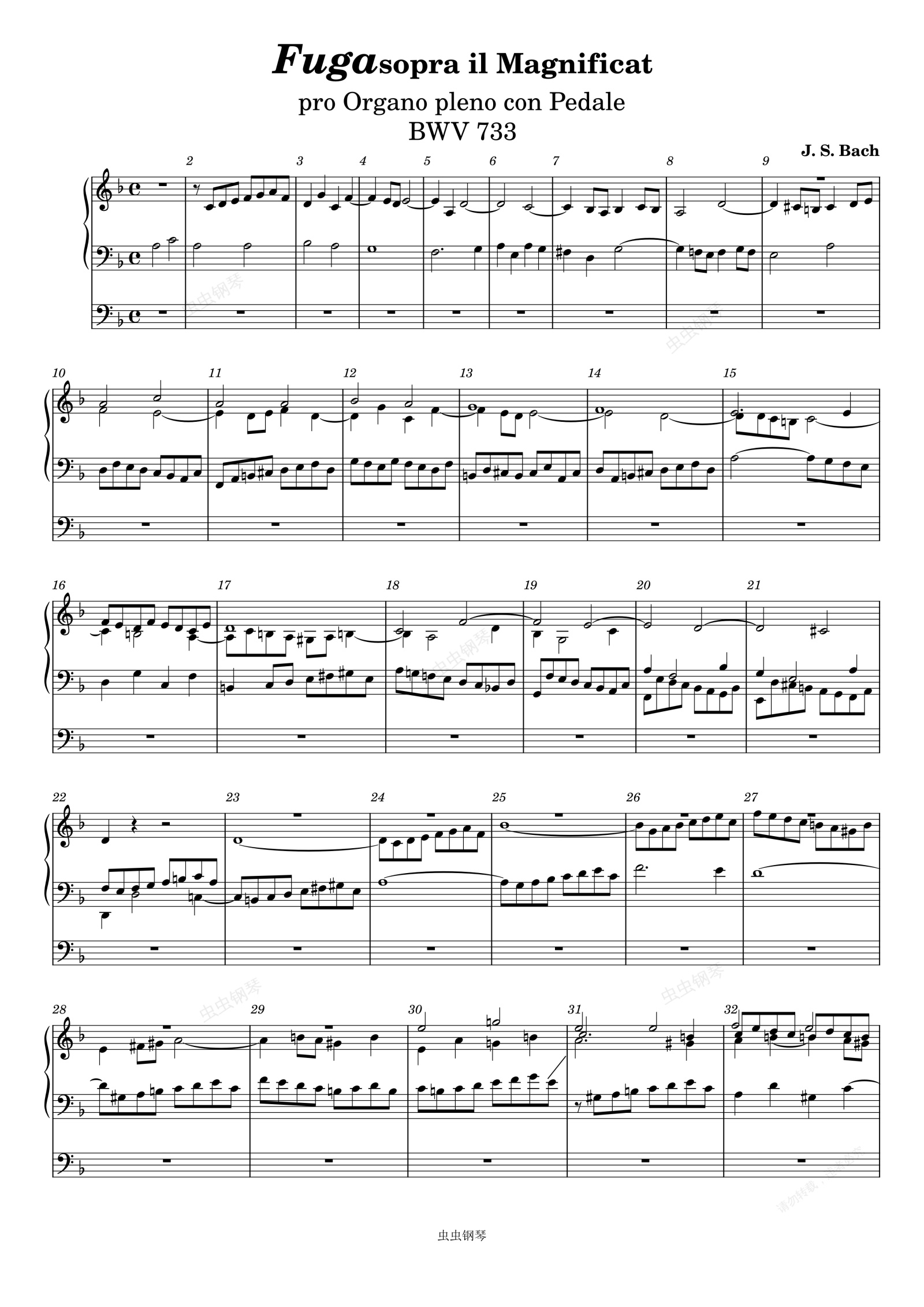 钢琴谱:J. S. Bach: Fuga sopra il Magnificat, BWV 733