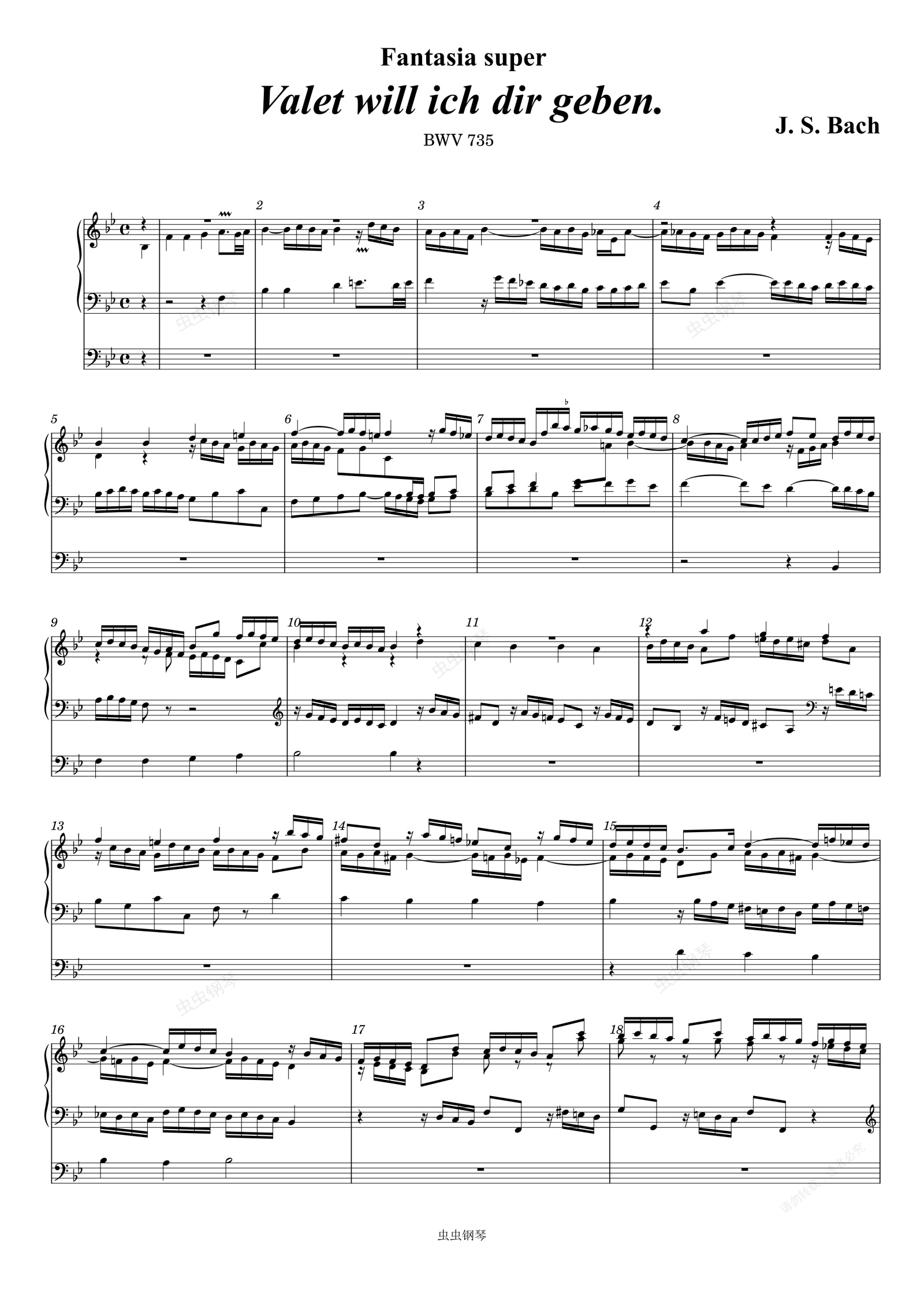 钢琴谱:J. S. Bach: Fantasia super 'Valet will ich dir geben'. BWV 735